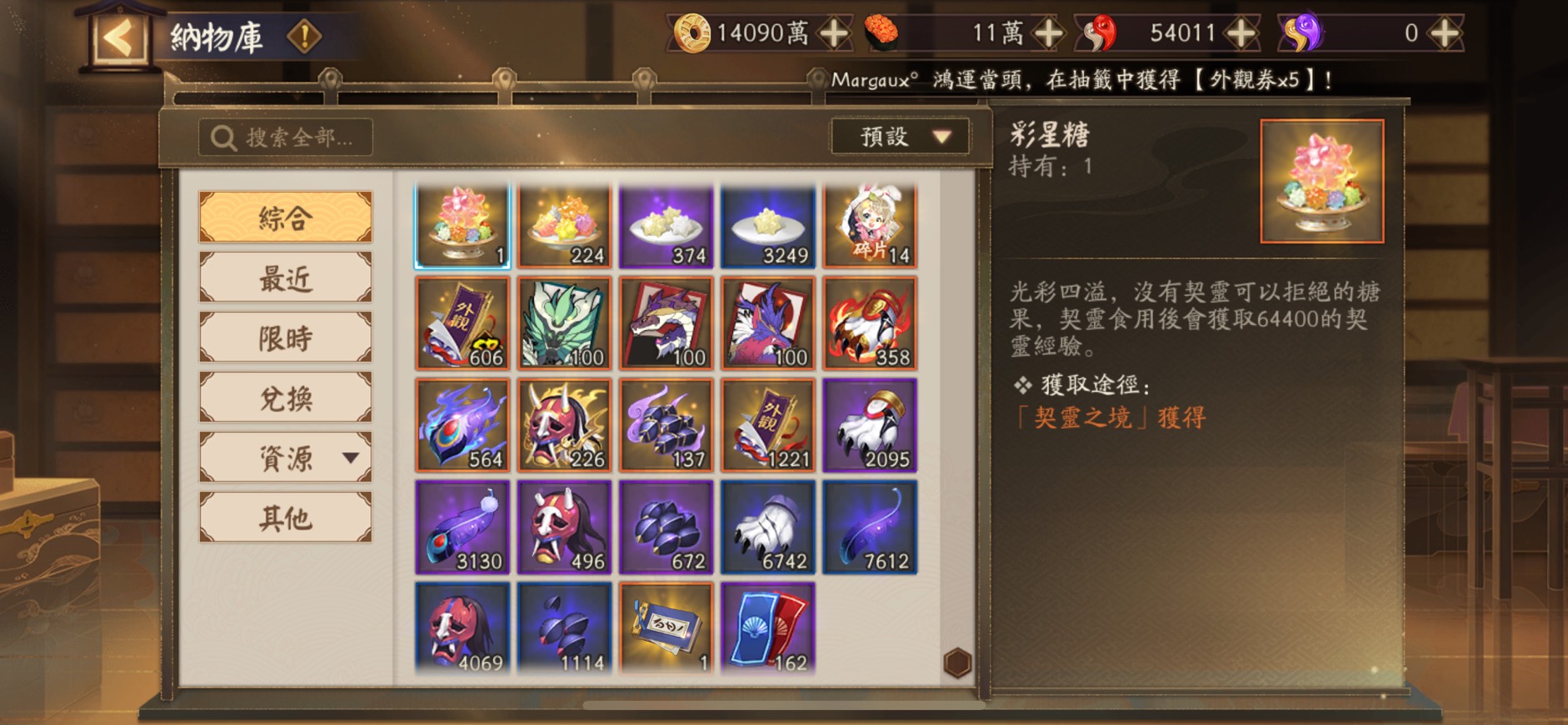4. 多角色碎片:有許多碎片,其中夏目、初音、黑崎一護、SP叉姬、瀧以及諸多老式神,都有超過一整隻的量