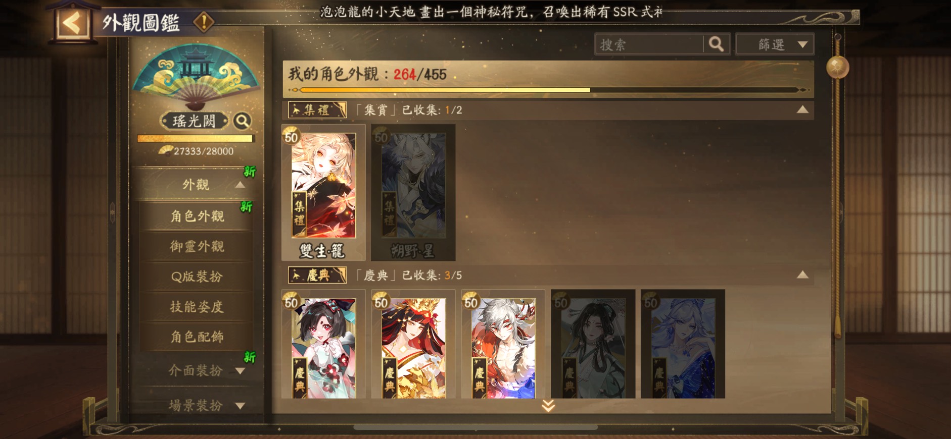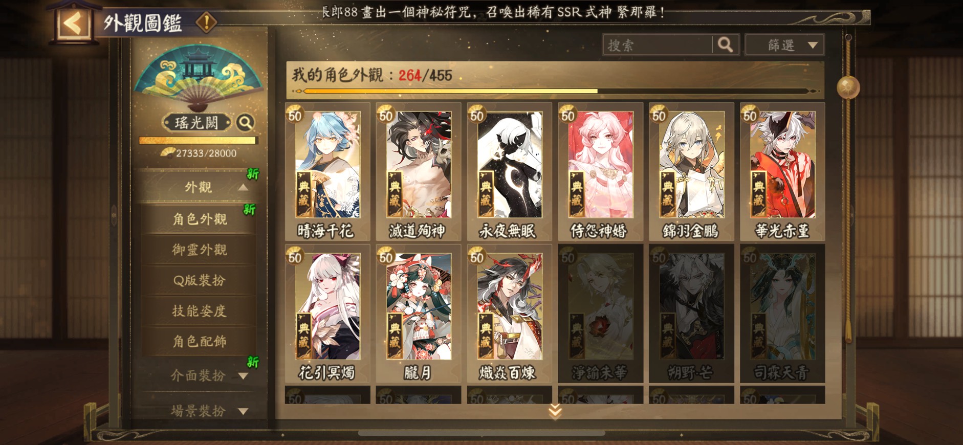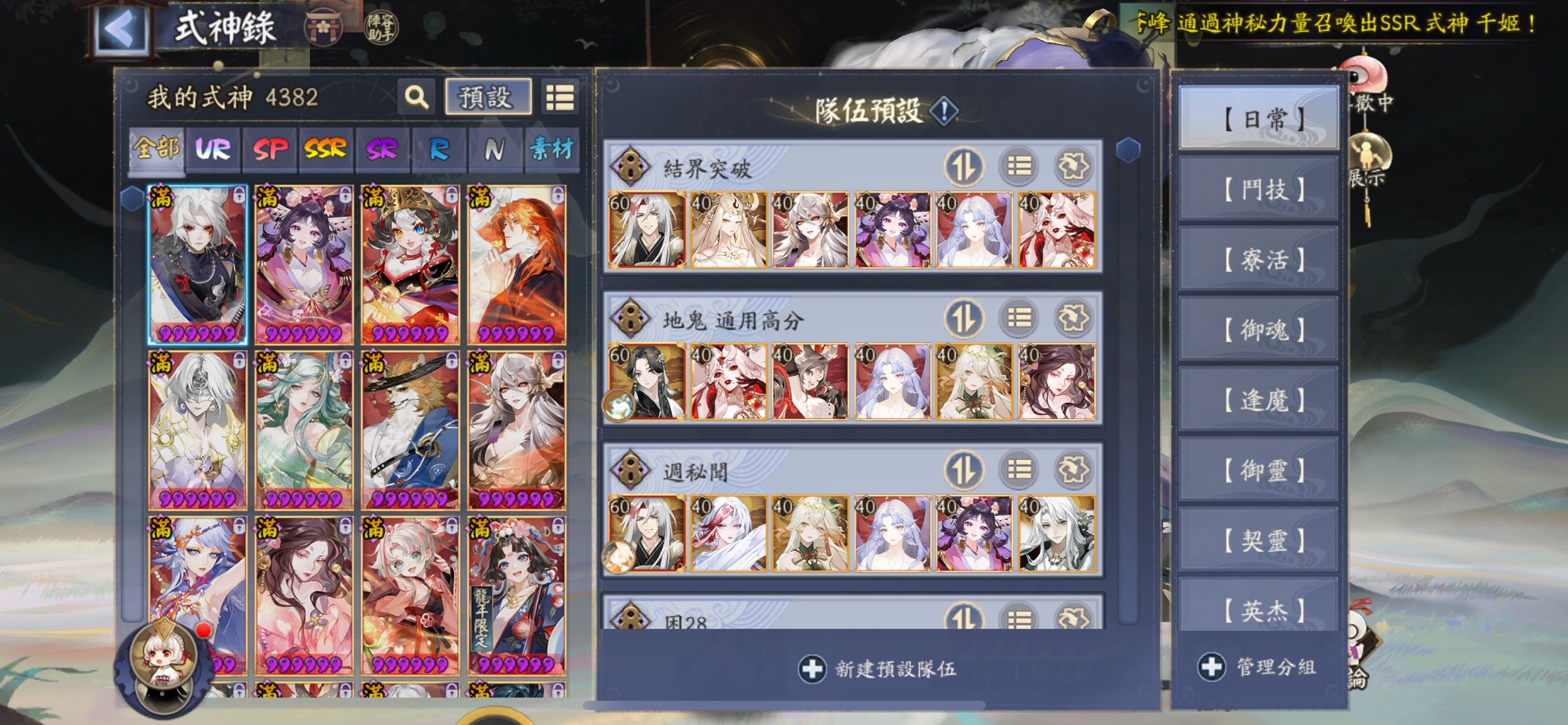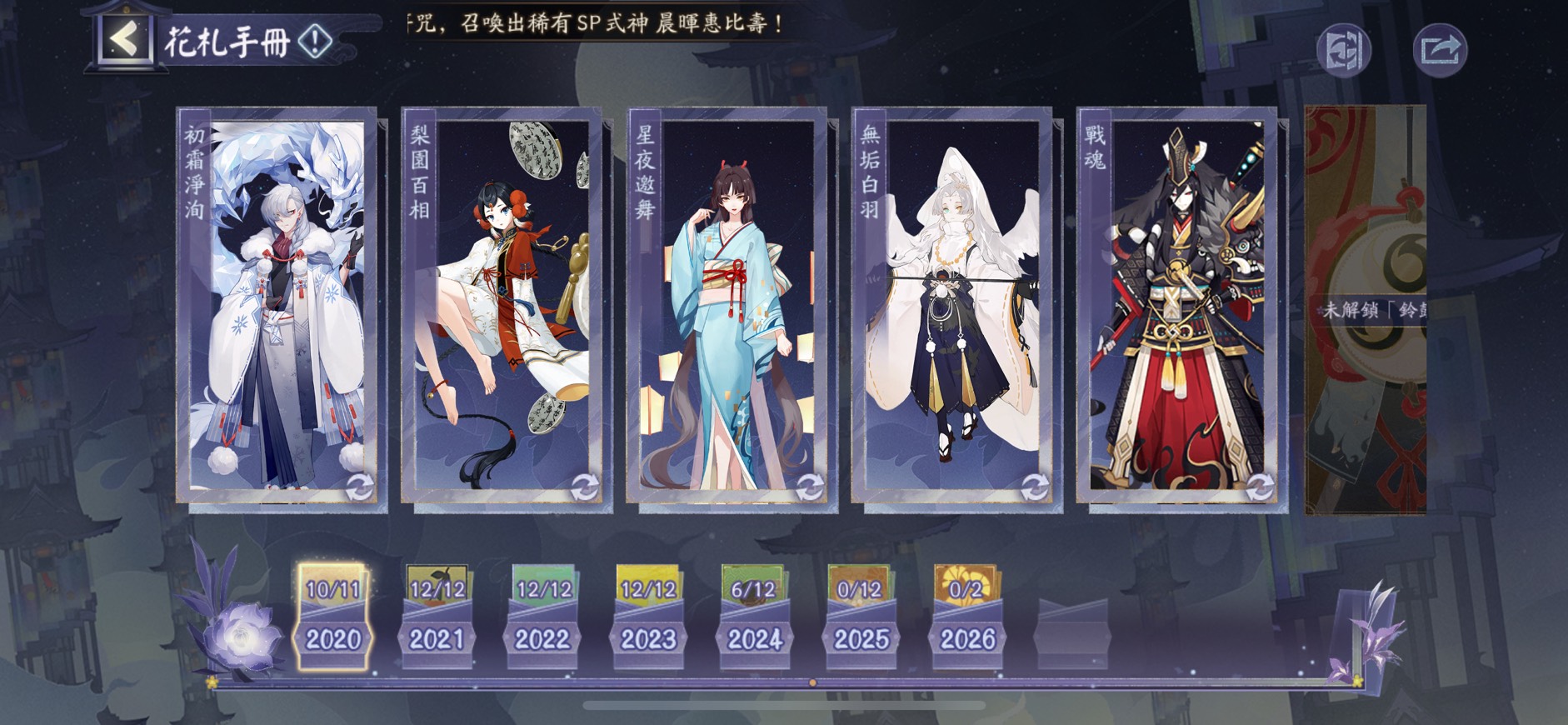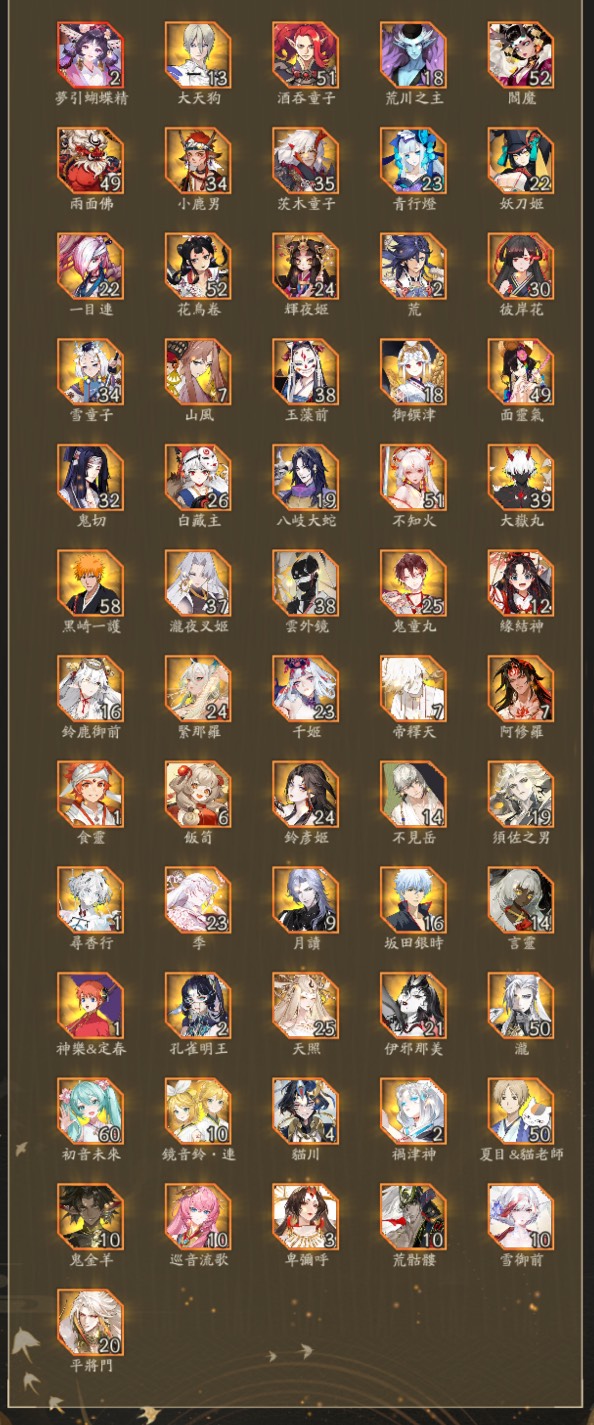 簽到 2660+ 天、真全圖(含最新式神 SSR神無月)、聯動角色全收集