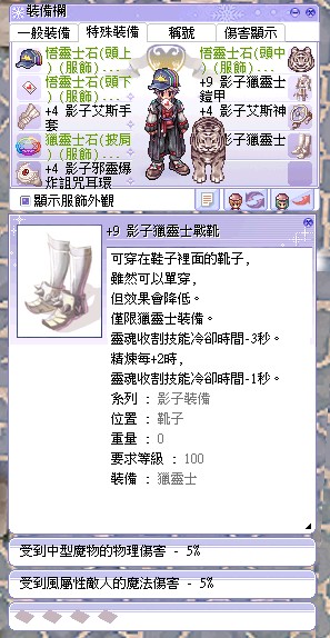 職套套組: +9 影子獵靈士鎧甲、影子獵靈士戰靴(職業增傷與穩定性提升)