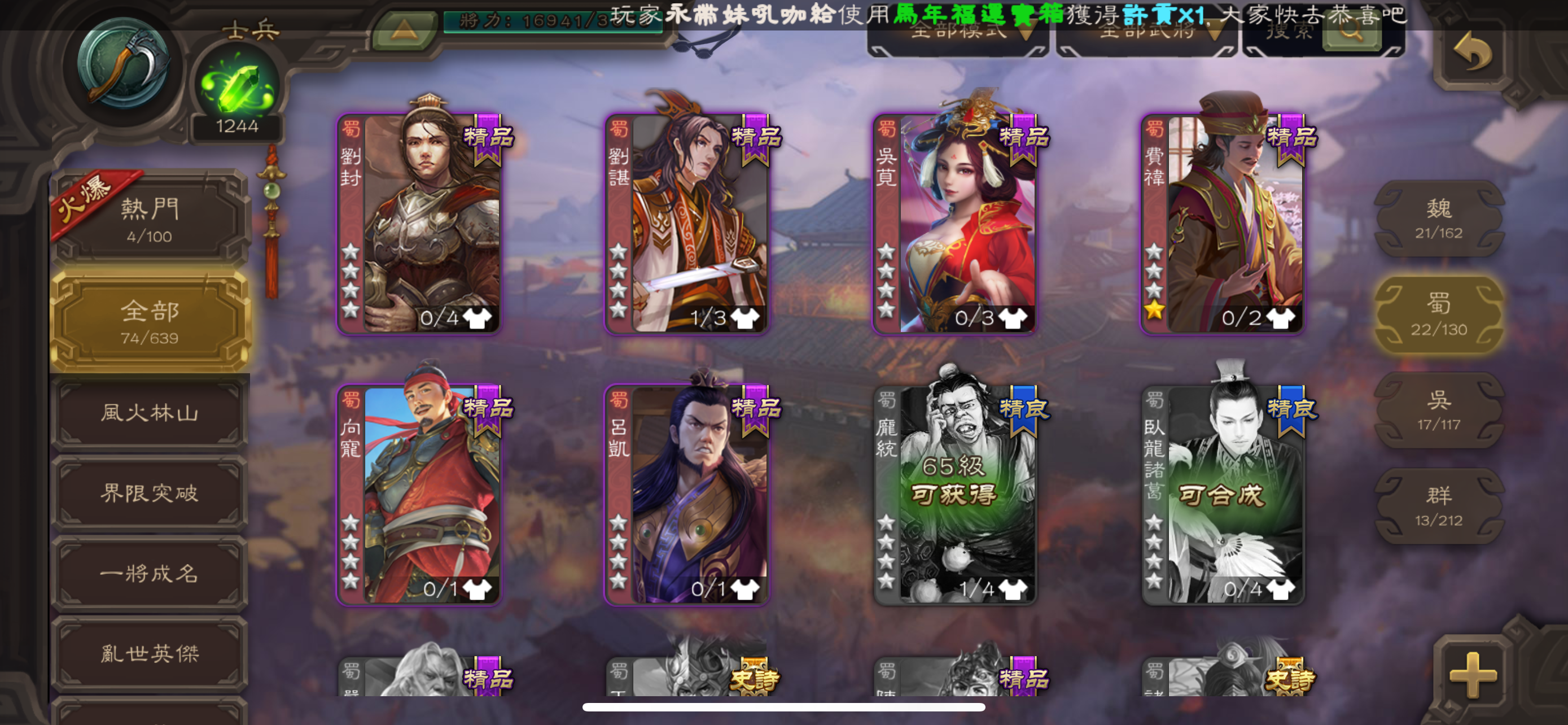 【41等】幻劉禪 徐榮 史詩自選號