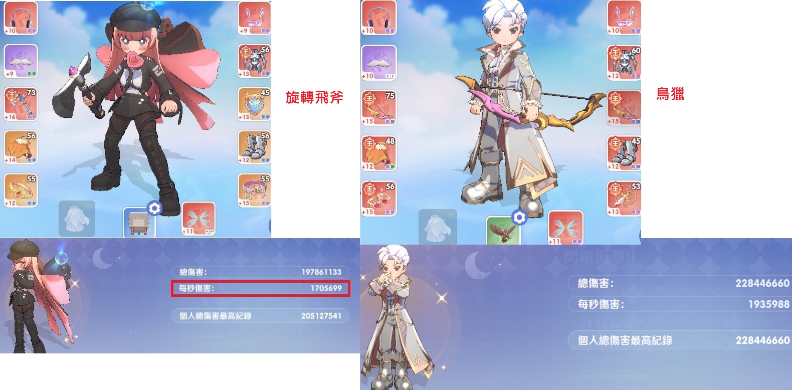 圖上都是本人的號精煉都不高但秒傷卻能很高
