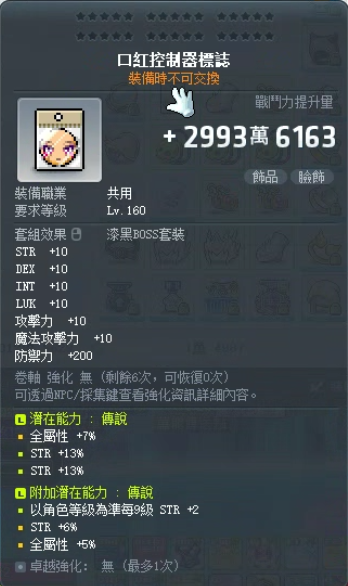 道具 【口紅控制器標誌】 33%力附加+2力11%力雙傳口紅 / 漆黑裝 / 打王用 / 可結合 劍豪 蓮