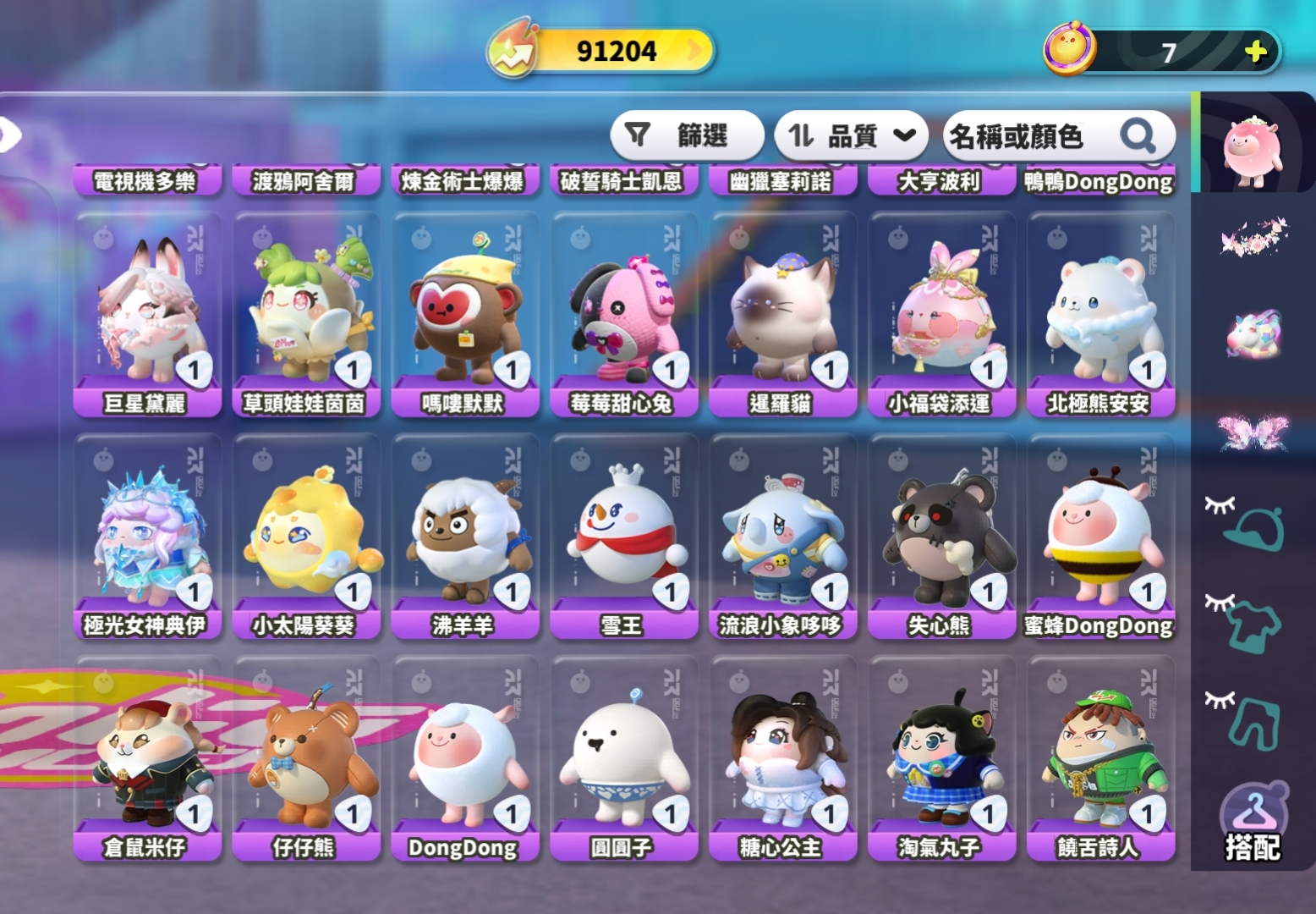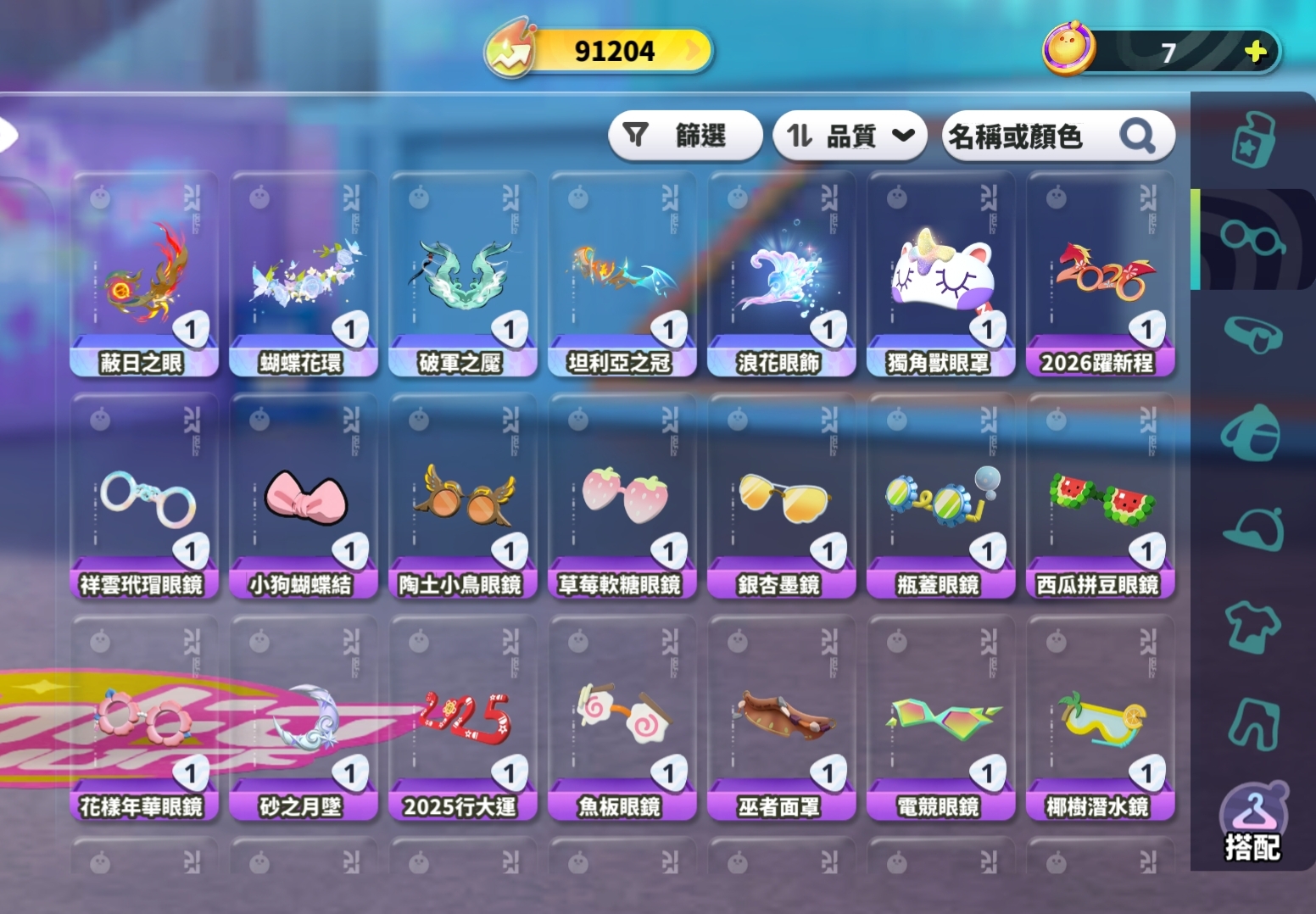 面飾共:68個;至臻面飾*6
