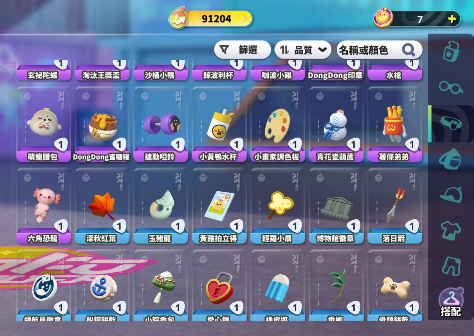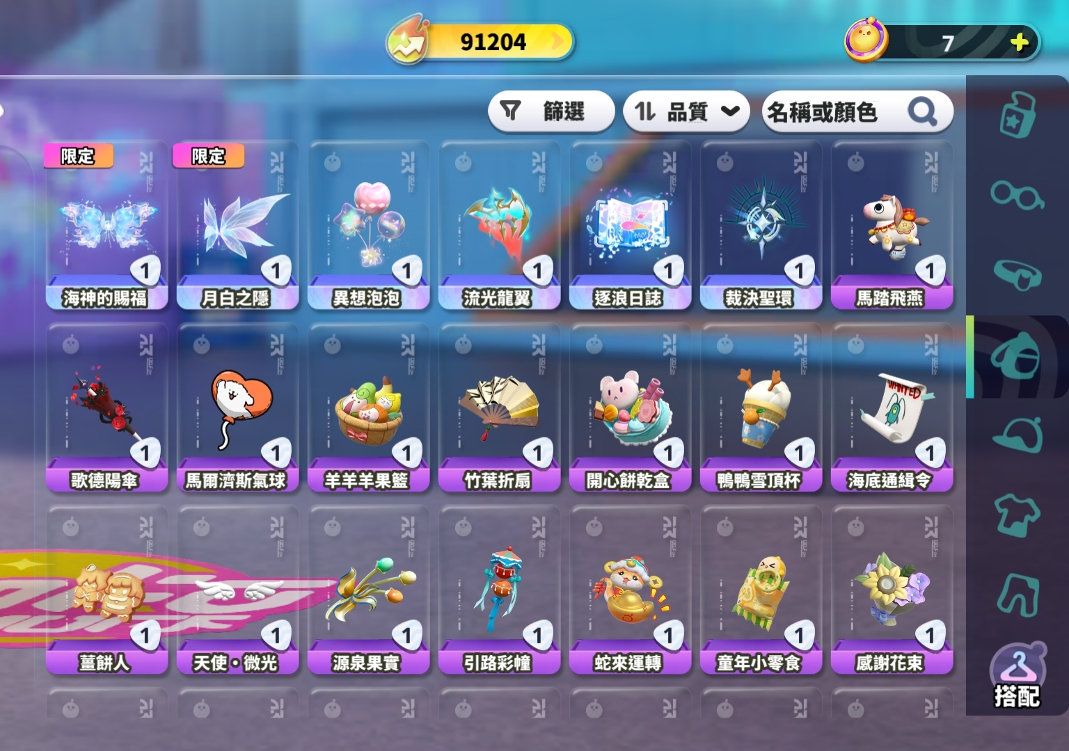 背飾共:76個;至臻背飾*6