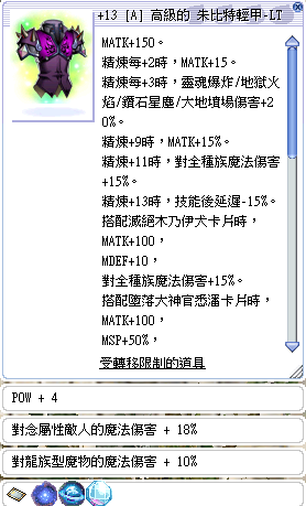 道具 +13[A]朱比特輕甲-LT 咒術星團Lv2 魔力星雲Lv2 敏捷尼夫Lv1
