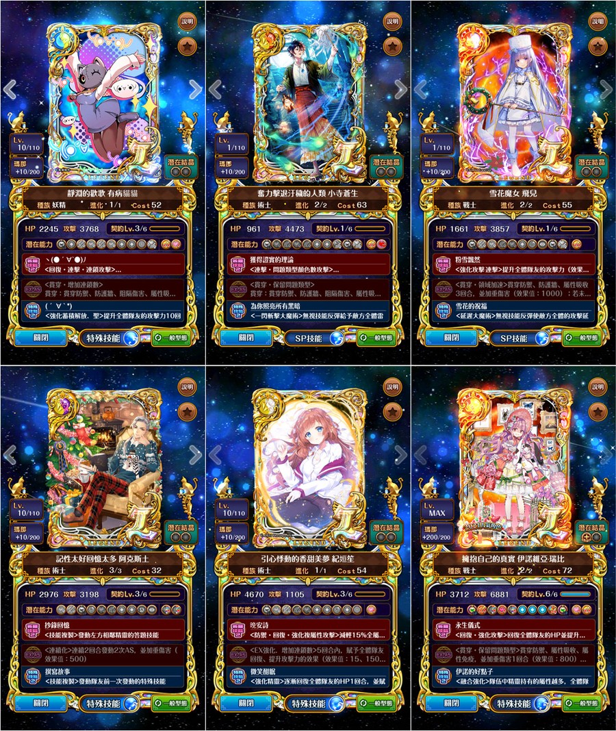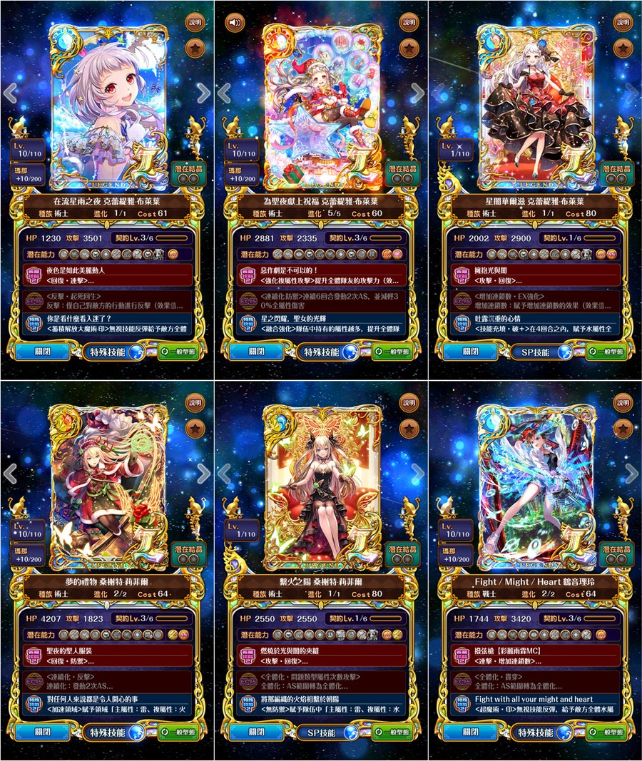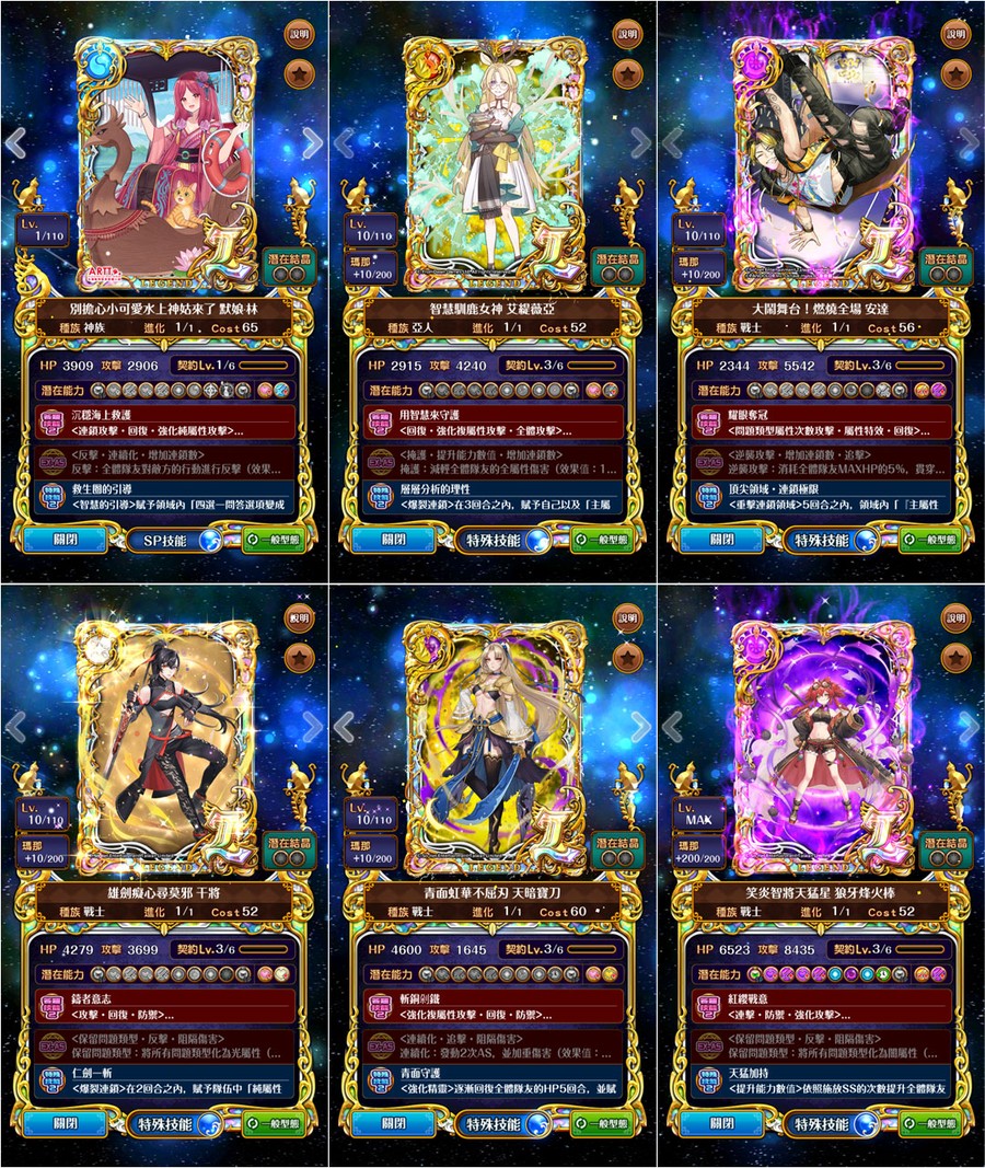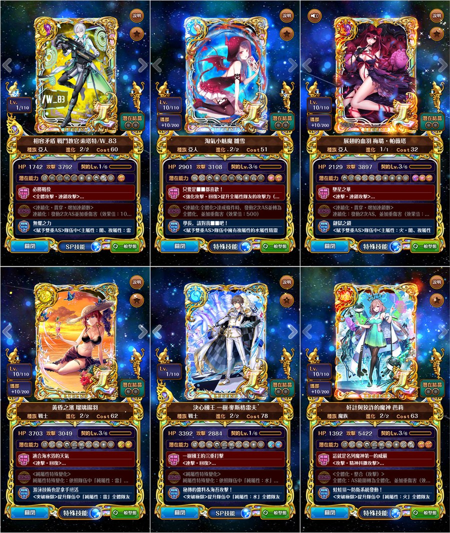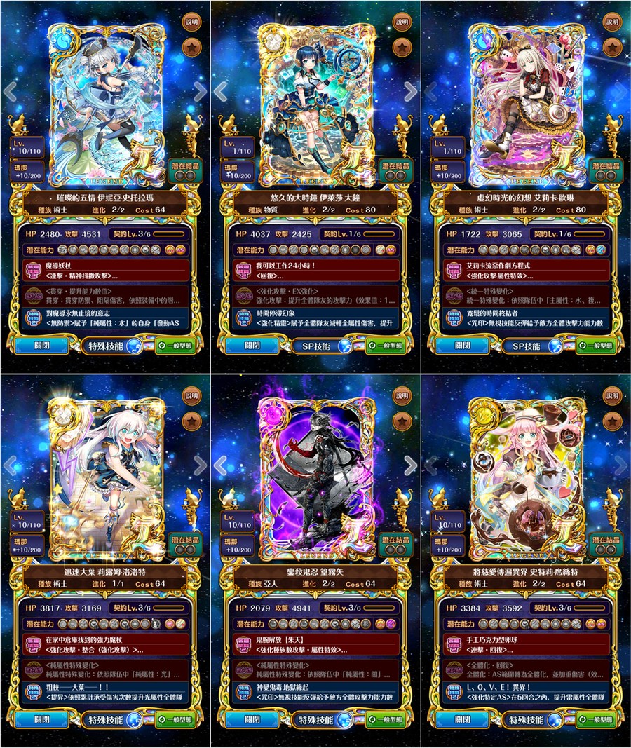 →優質潛能::全隊攻血各+1800、防技消、防封印、防AS封SS封、防毒防弱化防死秒、L潛抗詛咒、L潛變身→[強化特定AS、連斬潛:AS連擊數+3、擊破潛:殺敵連鎖數+2、、、]