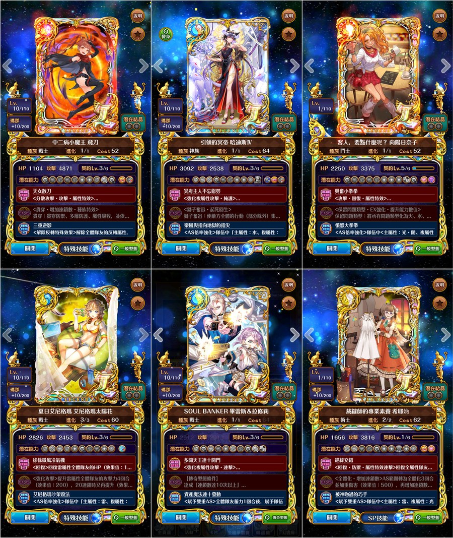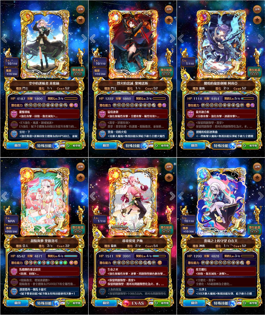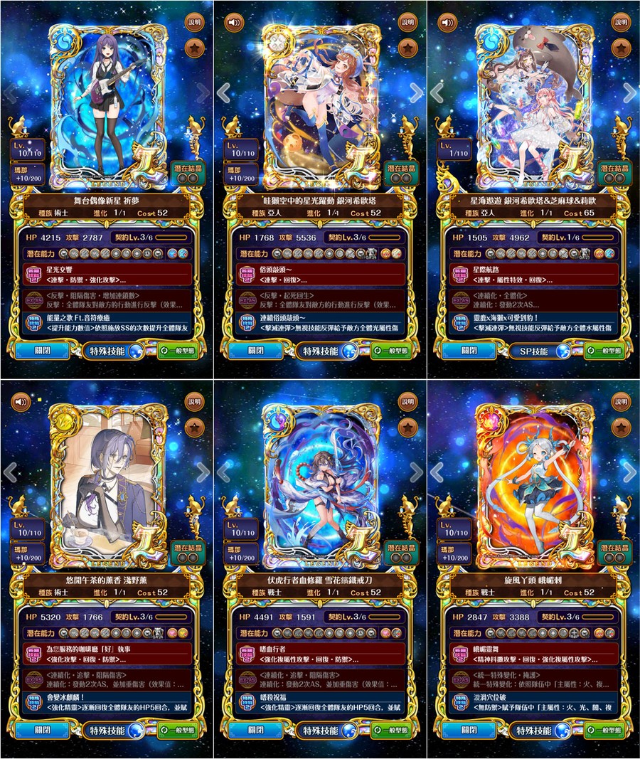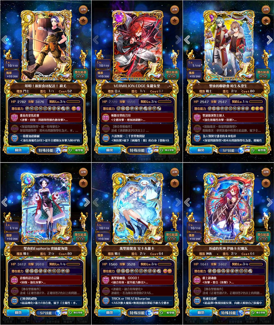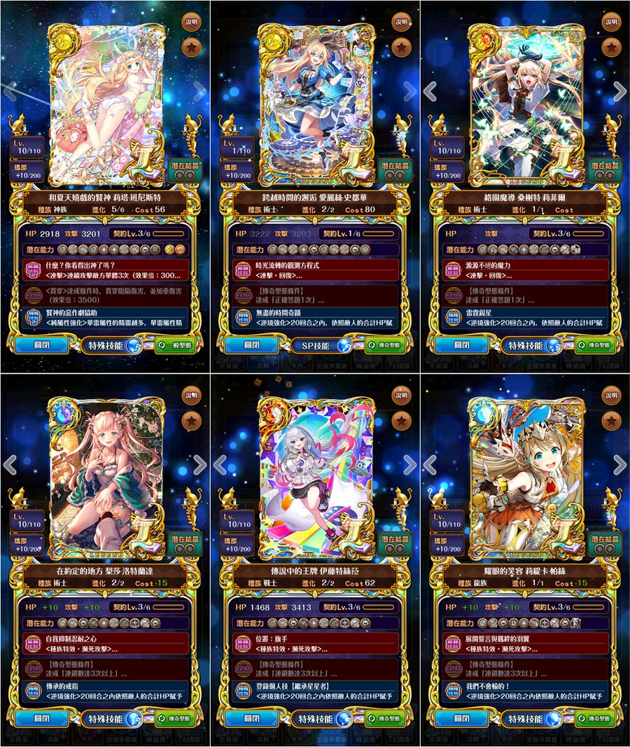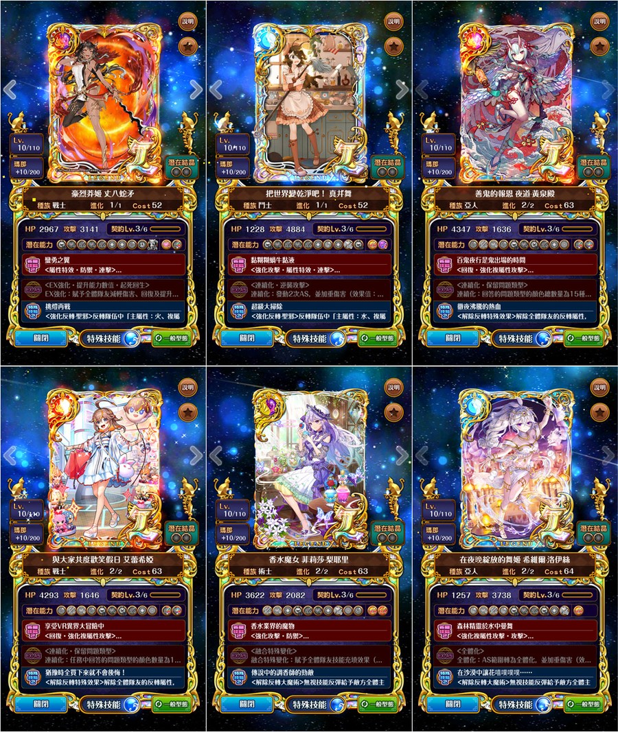 →優質潛能::全隊攻血各+1800、防技消、防封印、防AS封SS封、防毒防弱化防死秒、L潛抗詛咒、L潛變身→[強化特定AS、連斬潛:AS連擊數+3、擊破潛:殺敵連鎖數+2、、、]