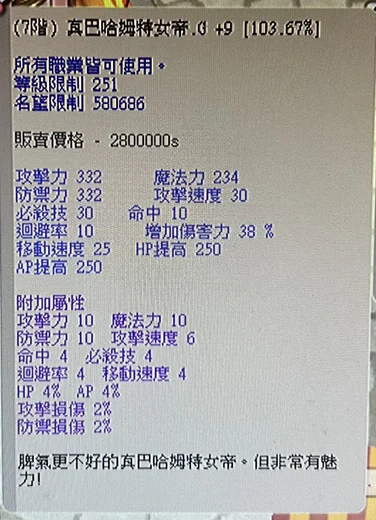 真巴哈姆特女帝.G+9 (半官署) !!! 夠跟你一輩子 (寵物.女帝.7階