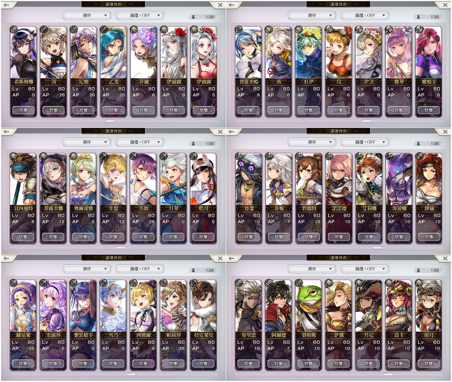 免費角:6(除主角群外,其餘皆未領)