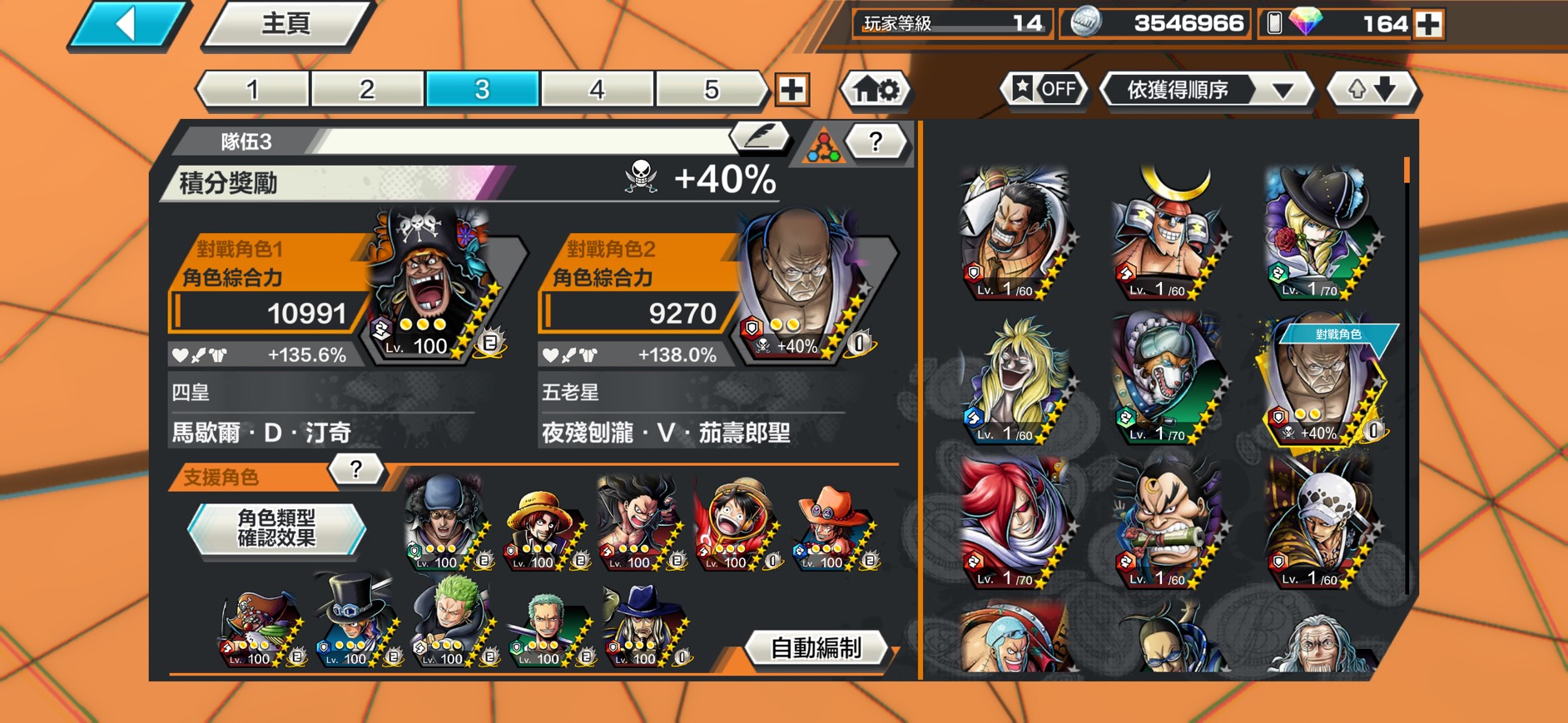 支援配好 支援%數中高 青雉上6星 最會跑的防禦者根黑鬍子陣容只要500初