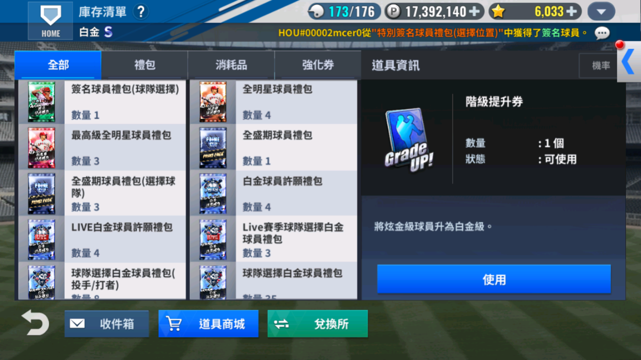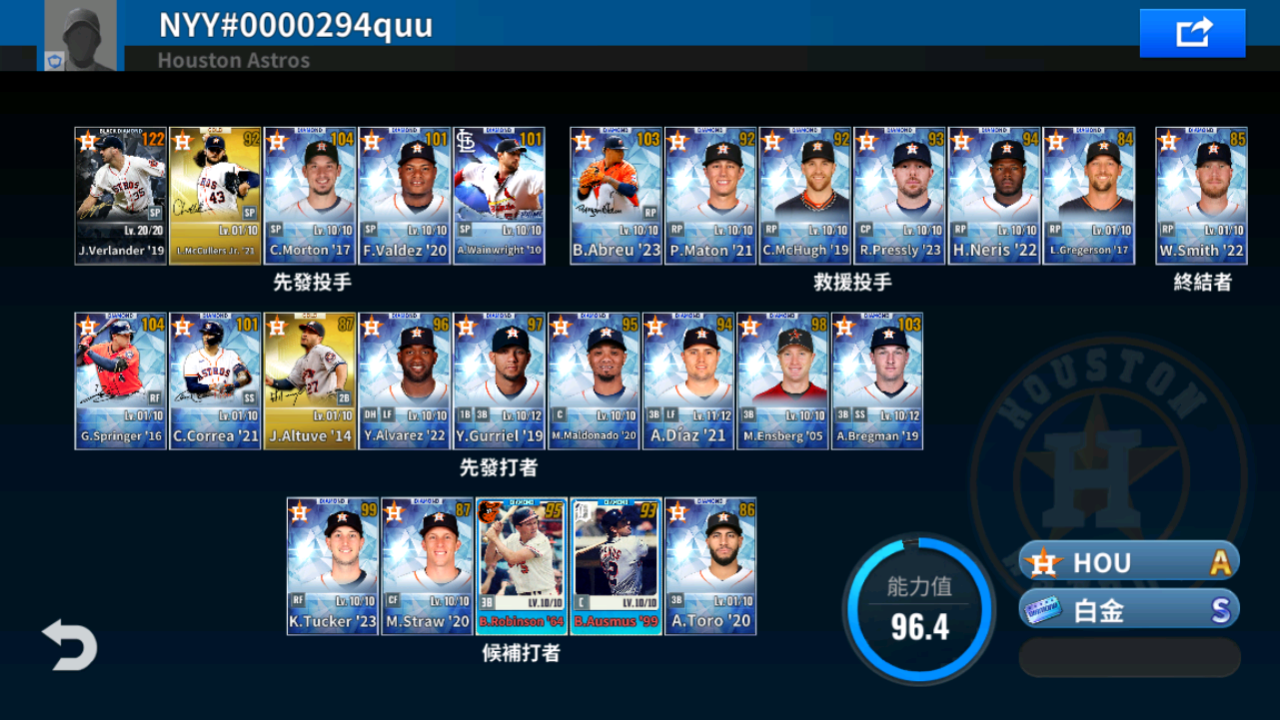 帳號 【初始號】 太空人6本簽+1球選簽+1升階/19 J.Verlander黑鑽簽