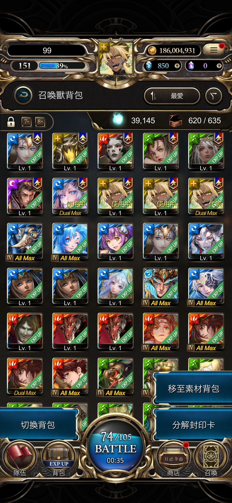 帳號2:有進度1600石+曼陀羅+奧丁+莫比烏斯含龍刻=3300