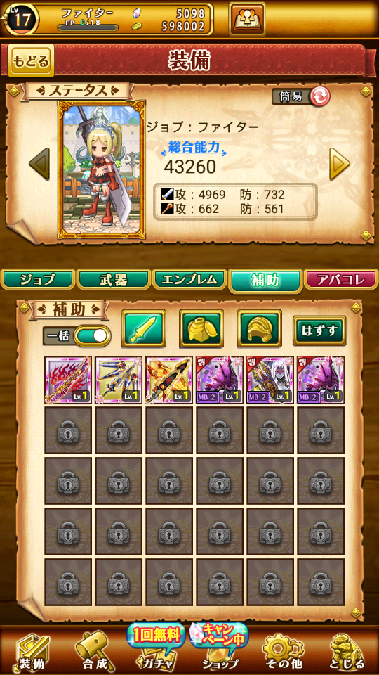 帳號內還有很多其他究極裝備可以放輔助欄