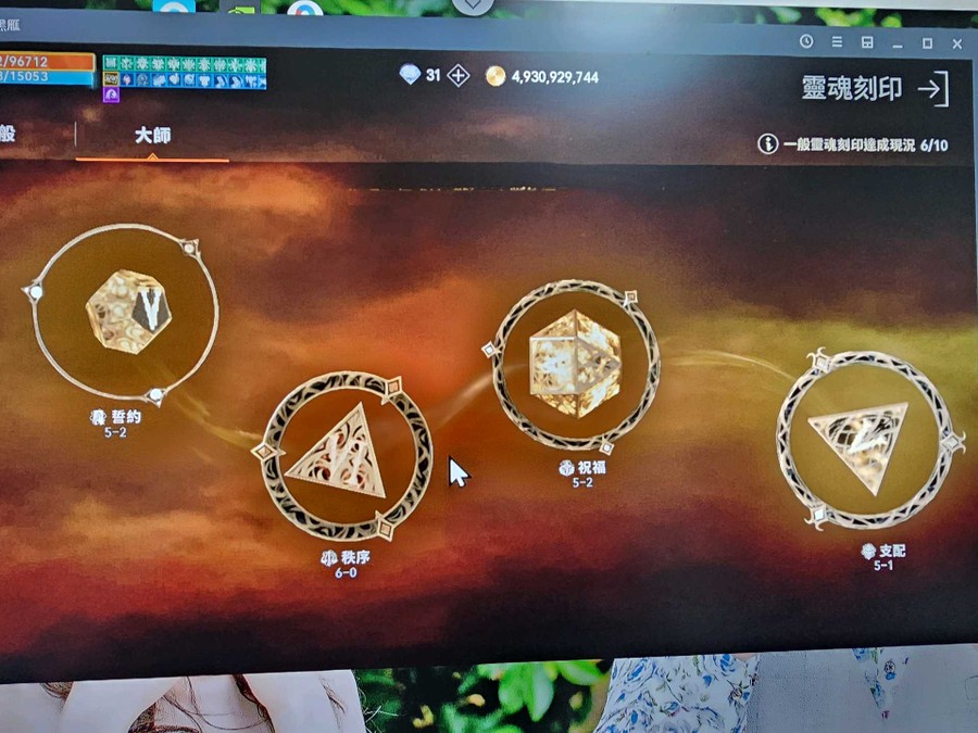★大師靈魂刻印:誓約5-2、秩序6、祝福5-2、支配5-1