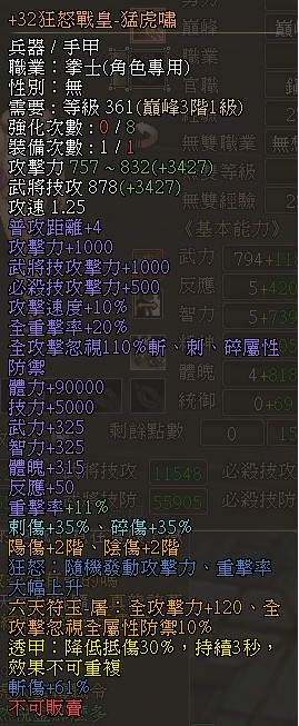 +32 戰皇-猛虎嘯 3階 手甲 (透甲 六天-屠)
