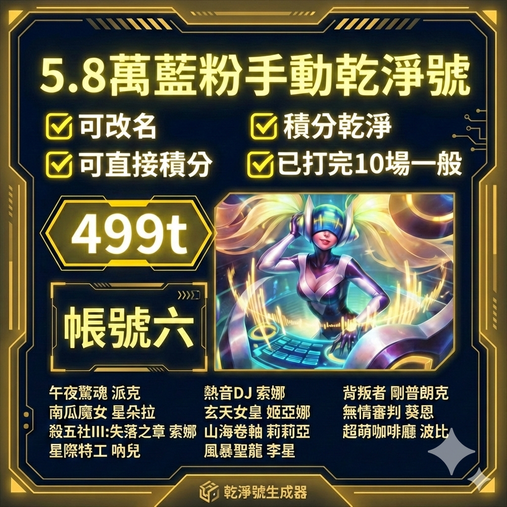 帳號 超高品質可挑造型可直接積分可改名5.8萬藍粉30等乾淨號LOL英雄聯盟