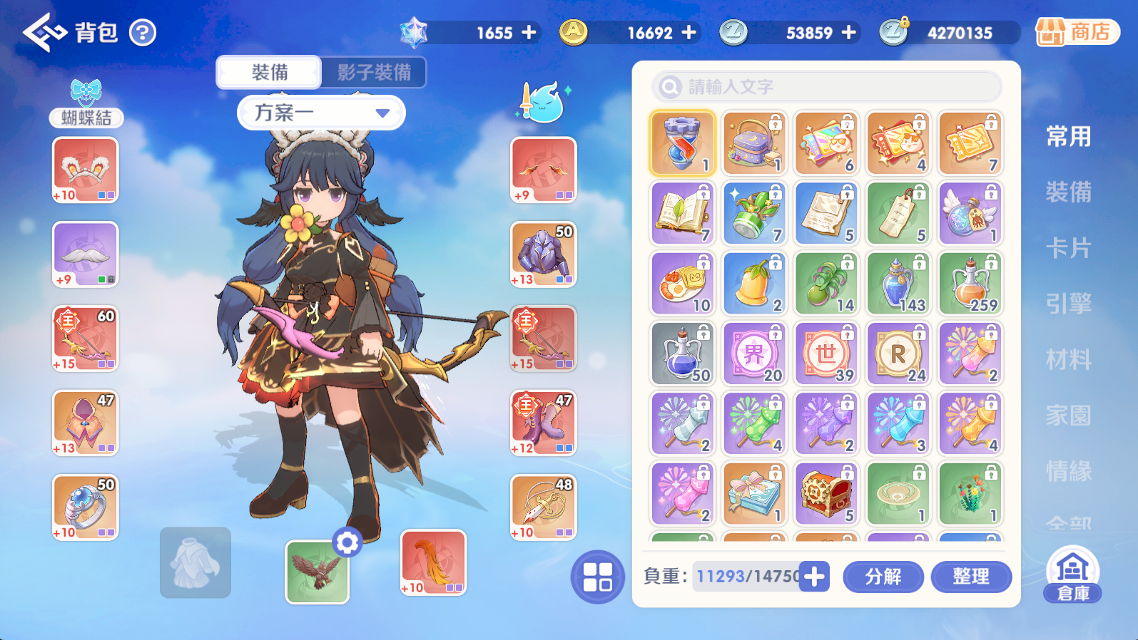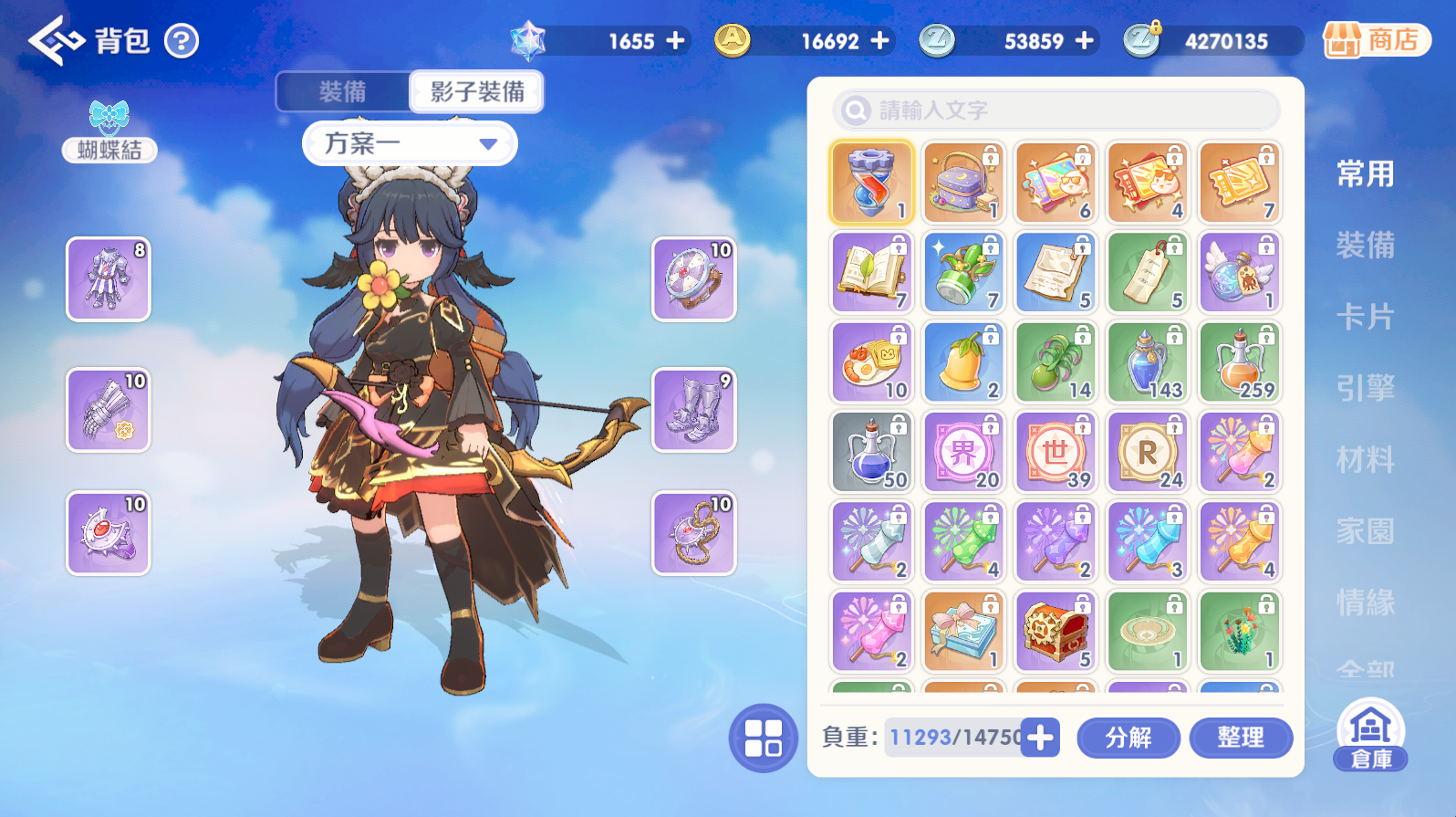 背包目前留著都是橙色lv4的,或是雙色珠,沒有lv4都拿去調和了