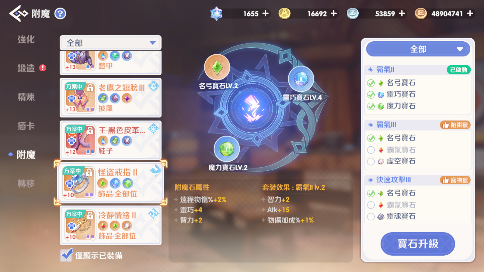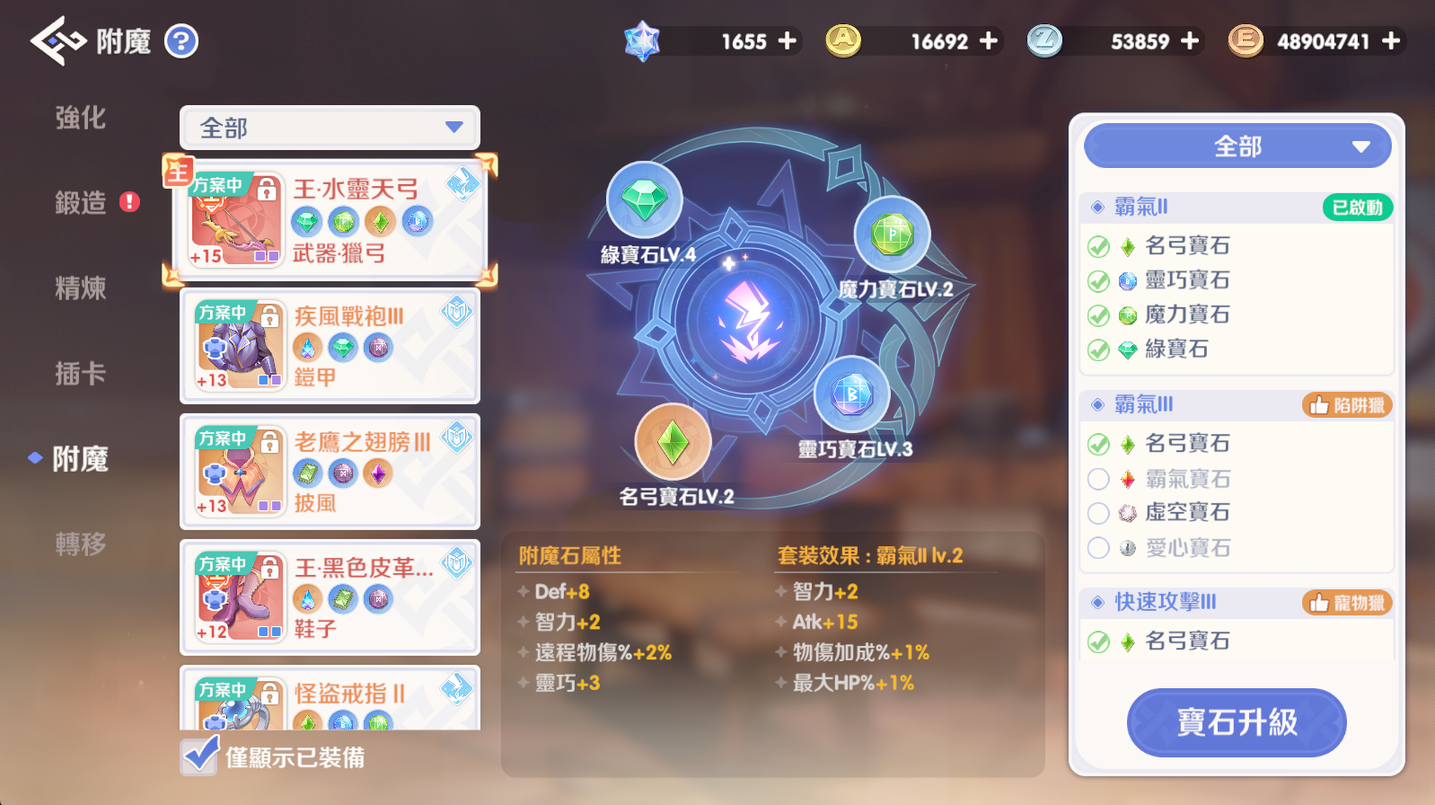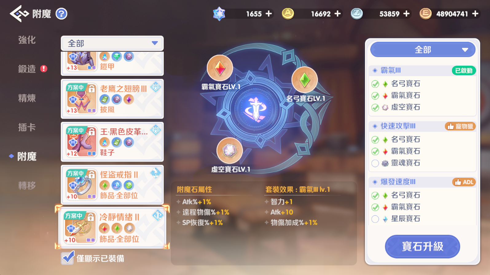 寶石附魔:目前都是用霸氣,主要拿物傷加成
