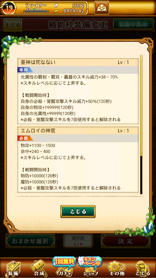 帳號內還有很多其他究極裝備可以放輔助欄