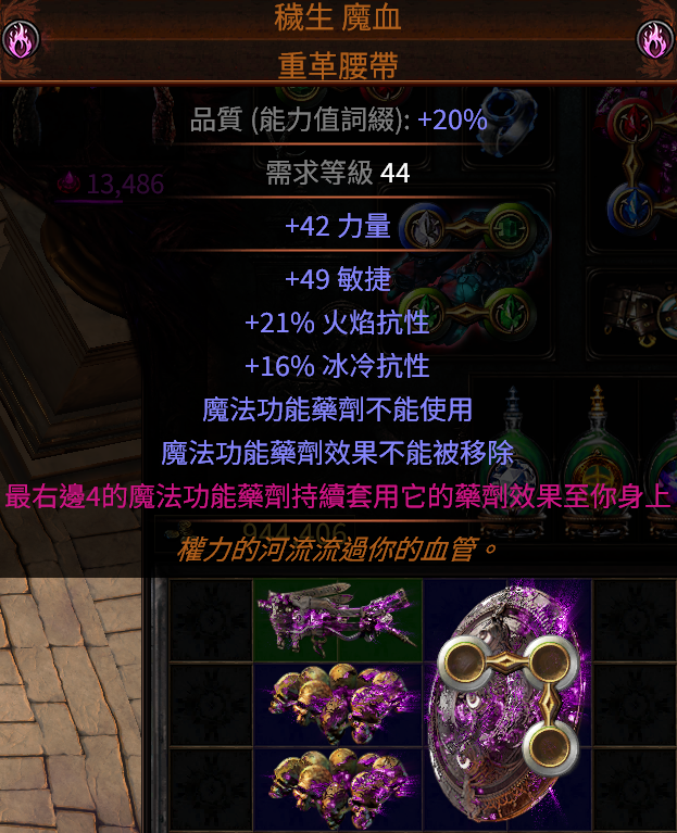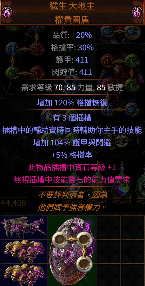 4.穢生 雙詞大地主- 此物品插槽中寶石等級 +1 無視插槽中技能寶石的能力值需求