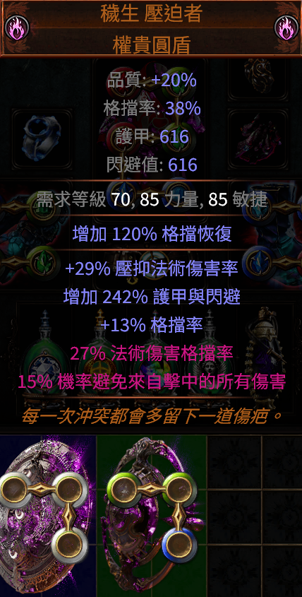 5.穢生 雙詞壓迫者- 27% 法術傷害格擋率 15% 機率避免來自擊中的所有傷害