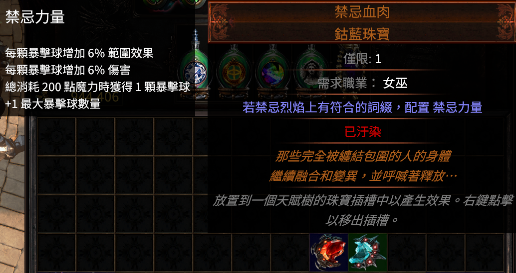 若禁忌血肉上有符合的詞綴,配置 禁忌力量