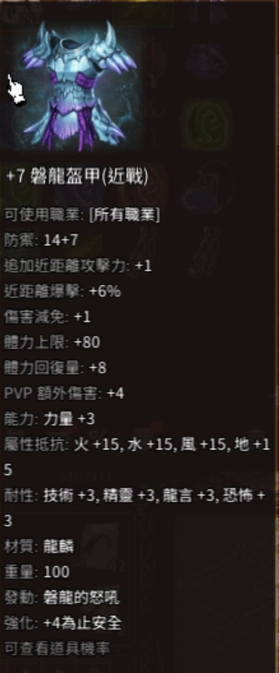 道具 +7盤龍盔甲(近戰)