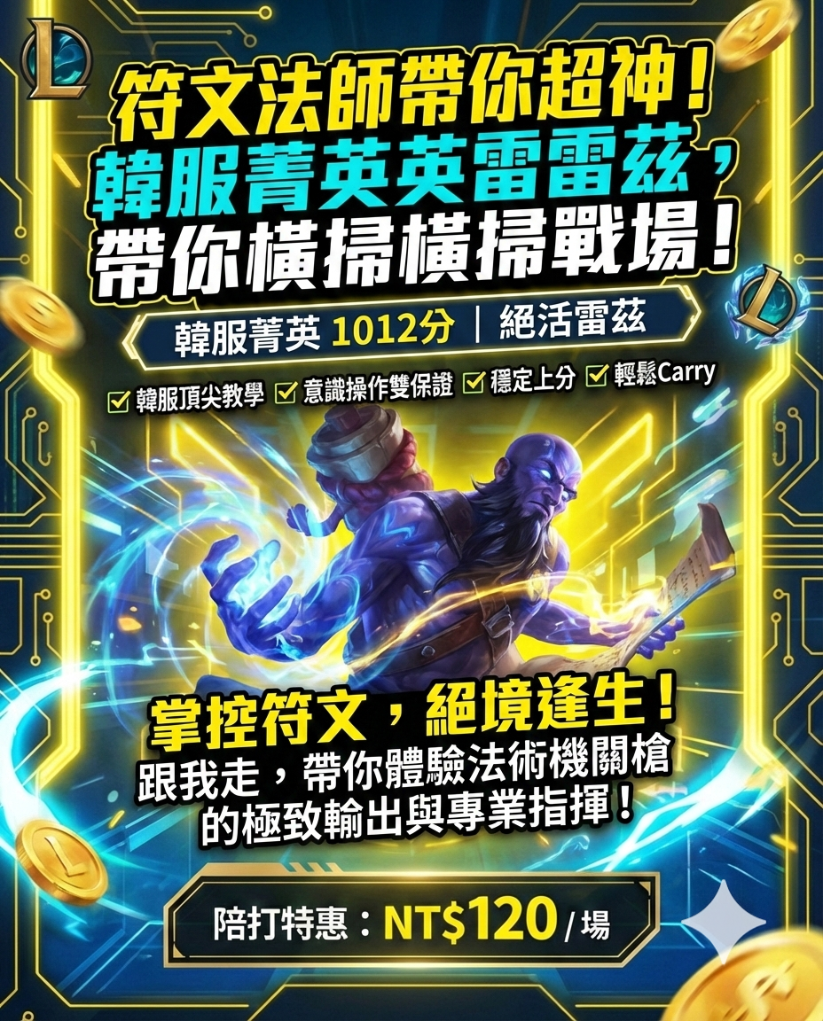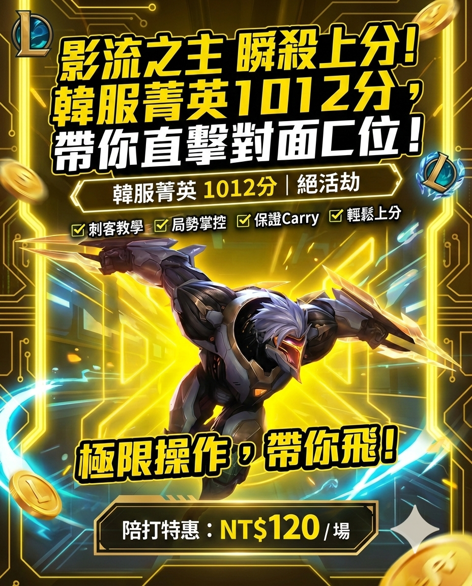 • 數據未達標不收費: 單場 KDA 低於 2 或是 OP.GG 評分低於第六名 的場次,通通不收錢!