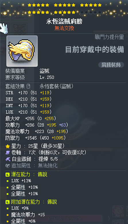 【永恆盜賊上衣】25星白五全B 36幸附加傳說雙排 永恆 盜賊上衣/夜使影武暗夜 可直下