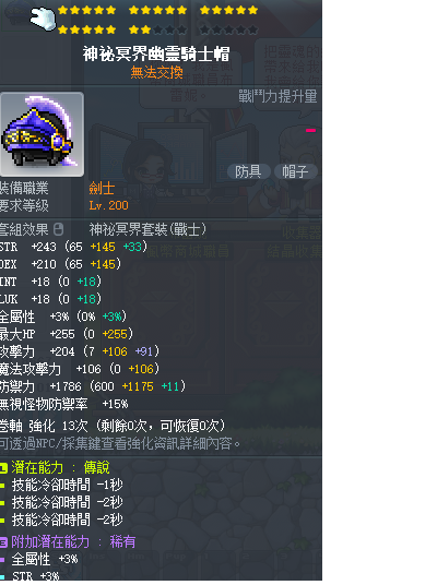 【靈騎士帽 CD 蓮 1 22C 頂培% 力 劍士】神秘冥界幽靈騎士帽 CD 蓮 1 22C 頂培% 力 劍士帽-