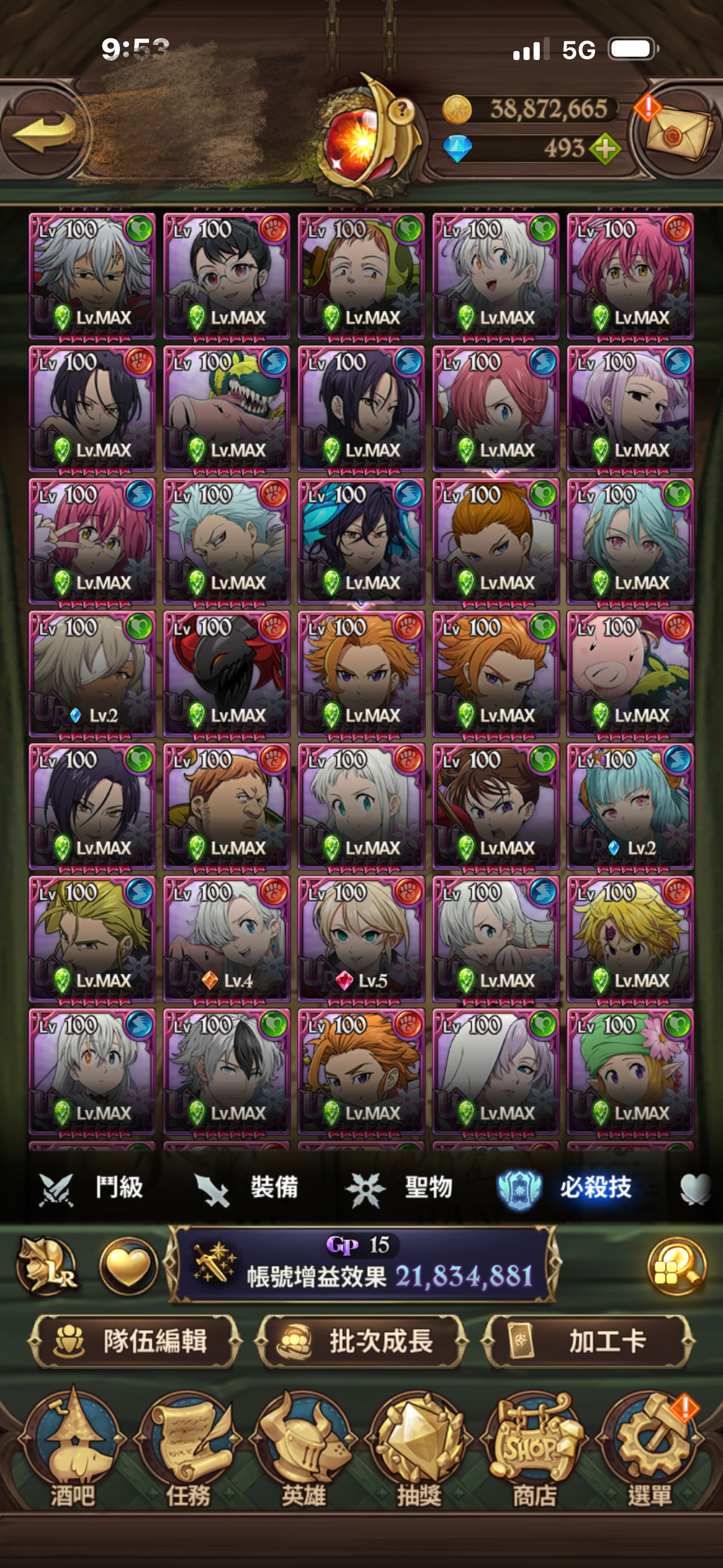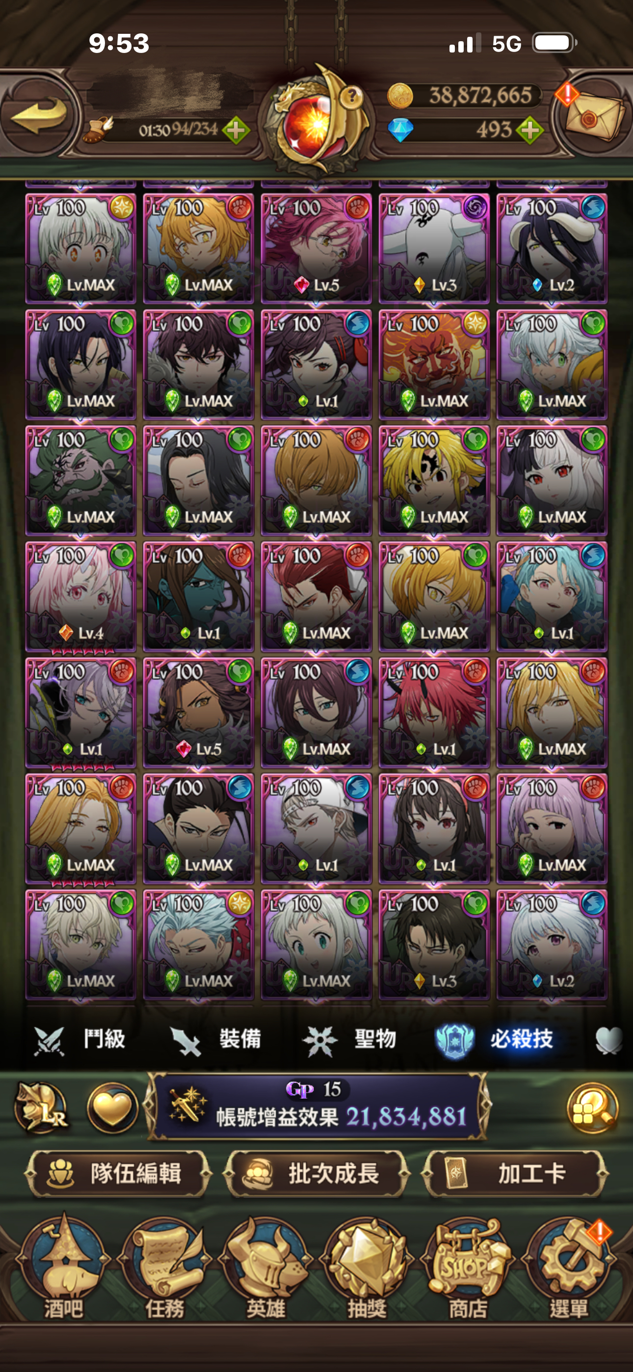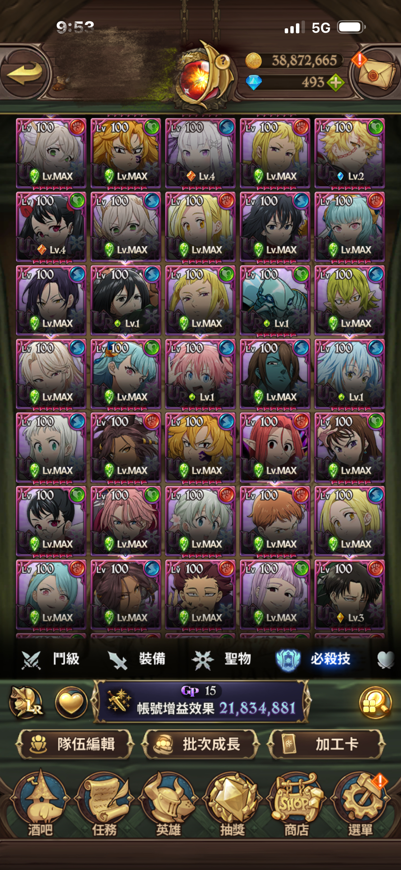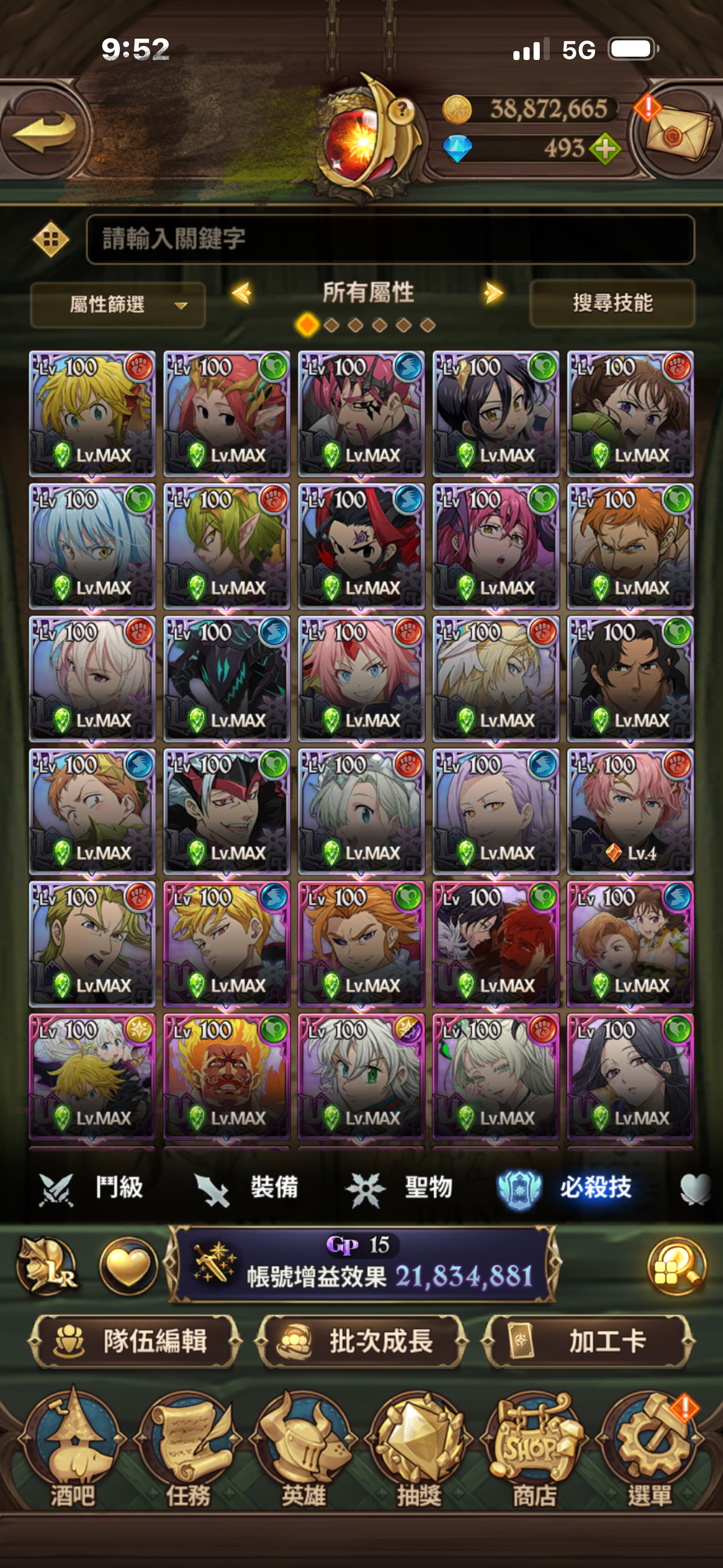 聖物全有 聖物強化 鳥魔獸 鹿魔獸 幾乎都大部分都強化完成!大亂鬥可打進第一名 每天拿滿資源!年卡已買 朱帽子亭買滿五個月