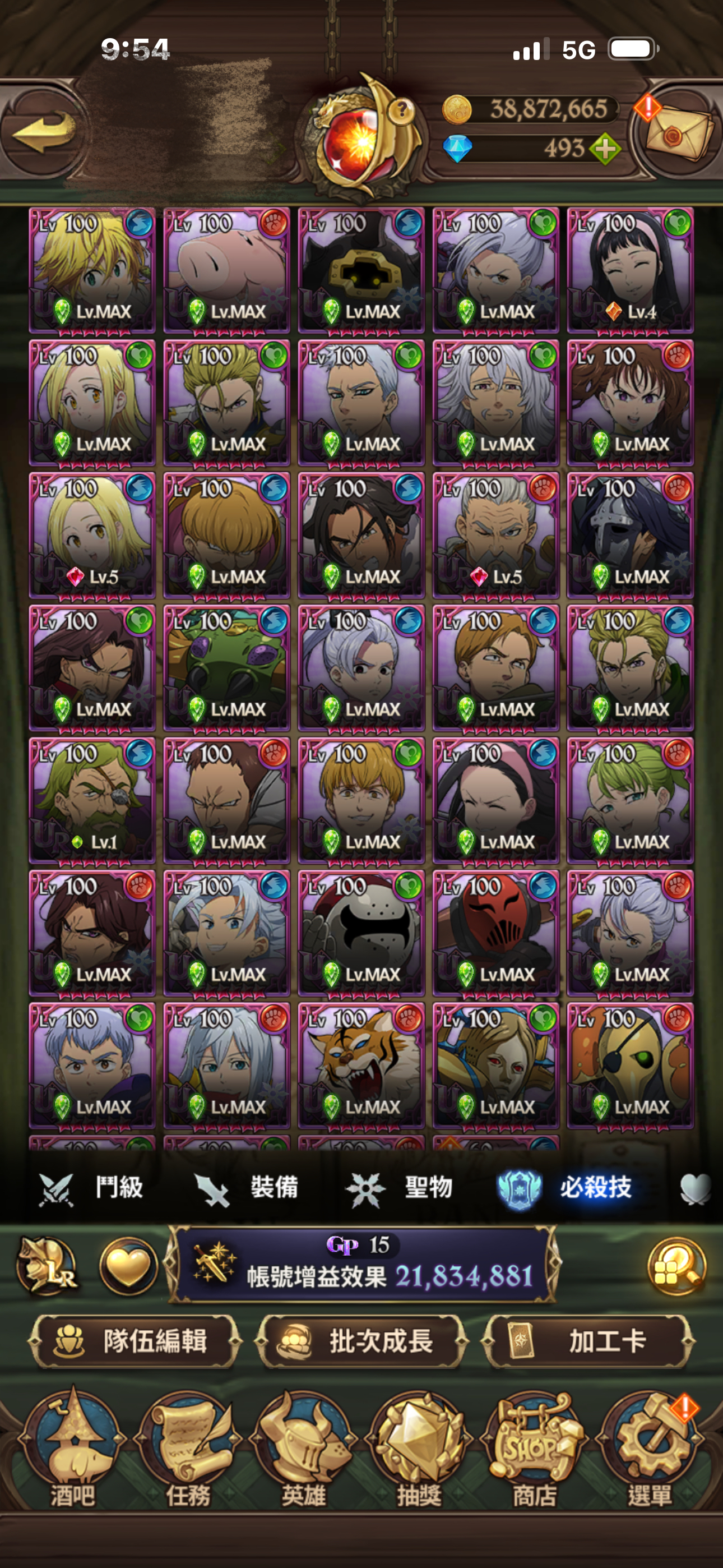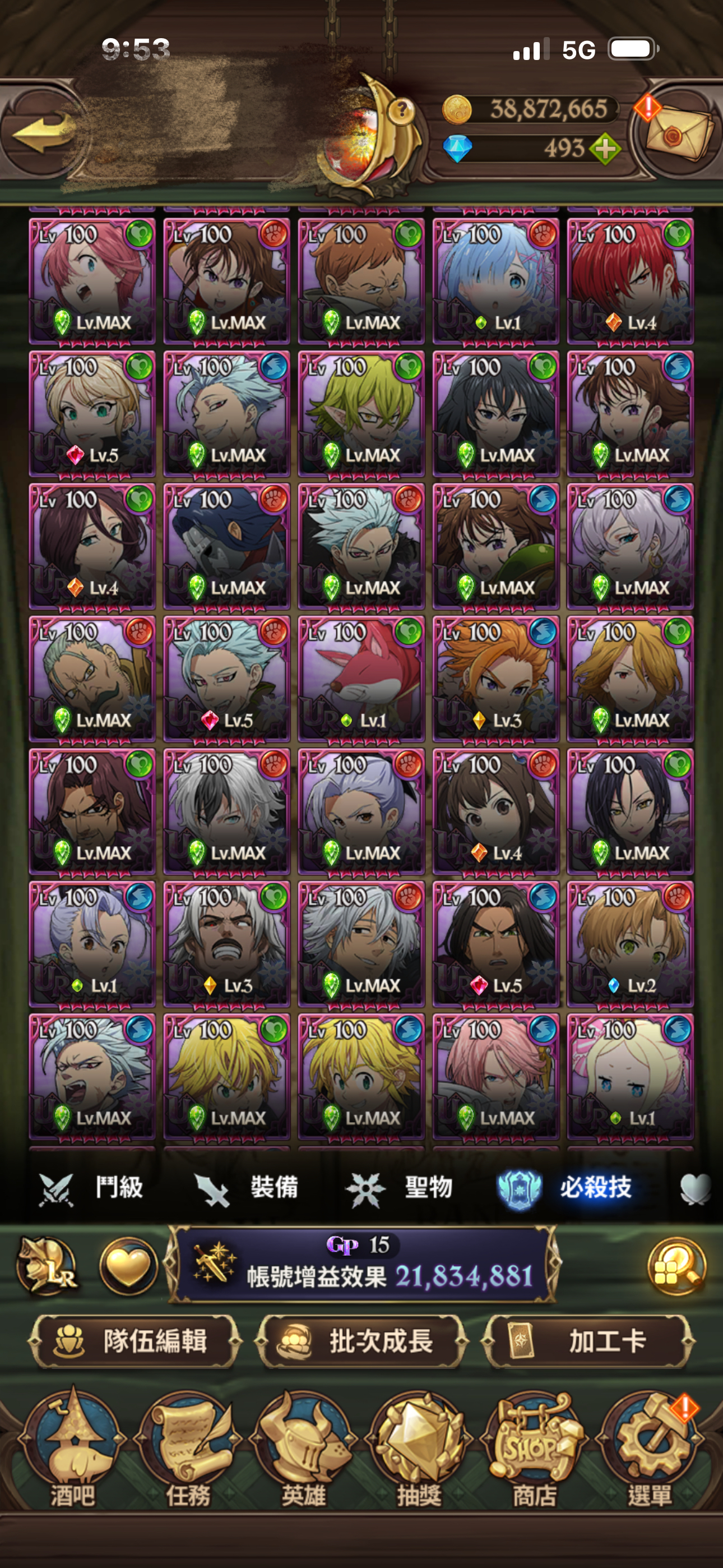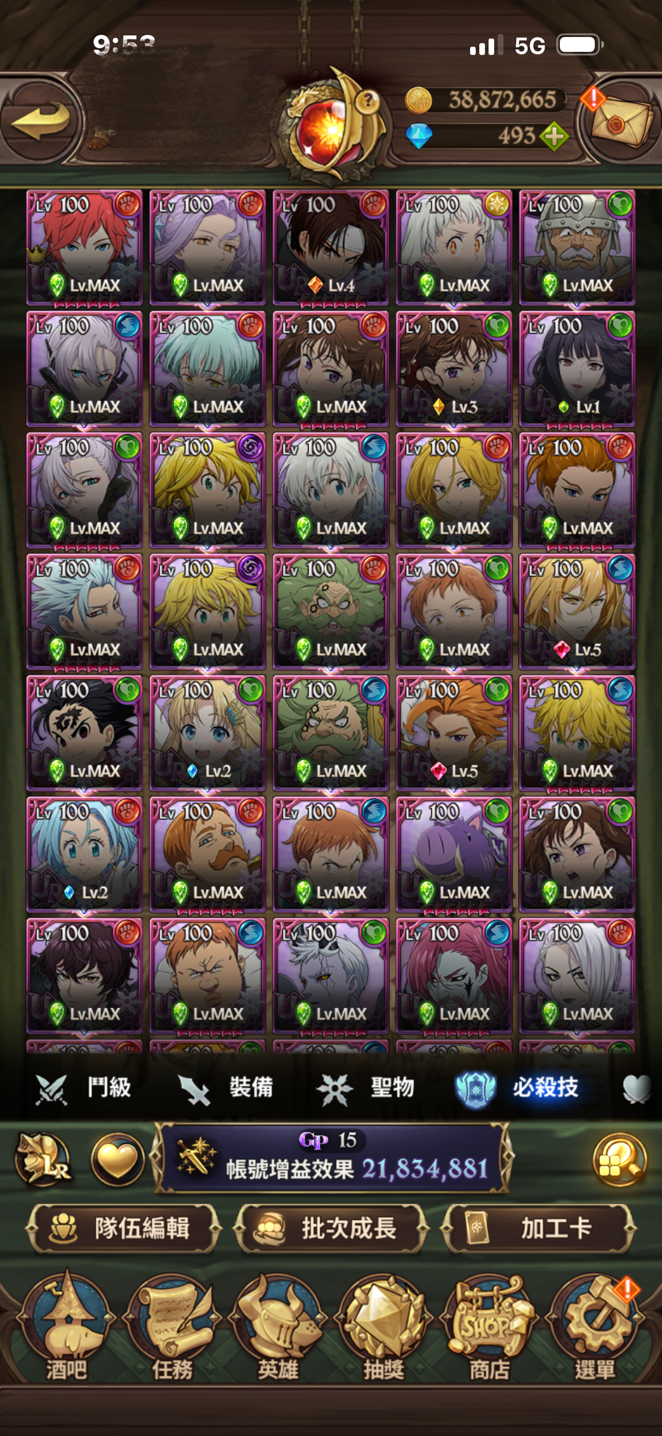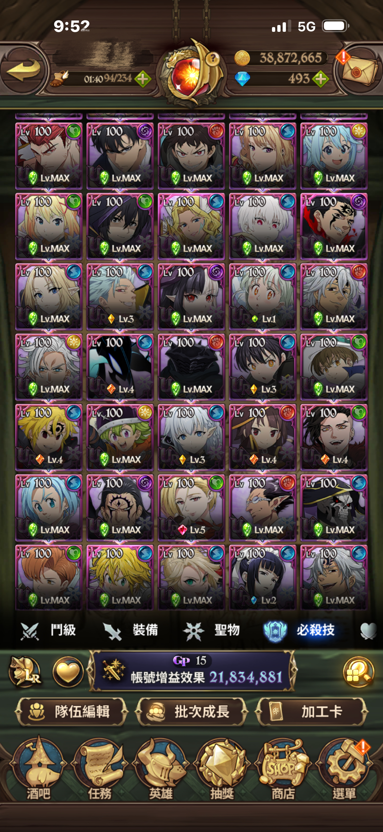 聖物全有 聖物強化 鳥魔獸 鹿魔獸 幾乎都大部分都強化完成!大亂鬥可打進第一名 每天拿滿資源!年卡已買 朱帽子亭買滿五個月