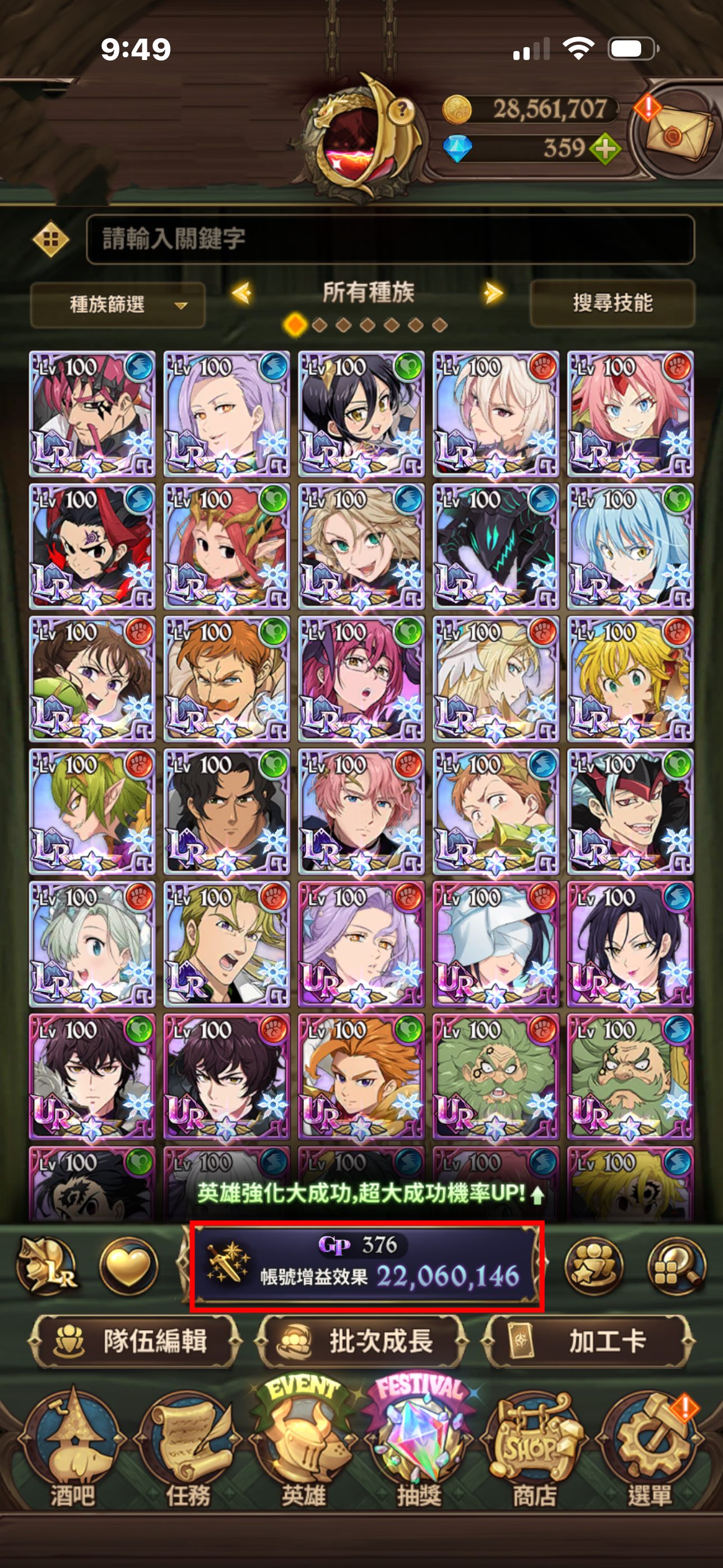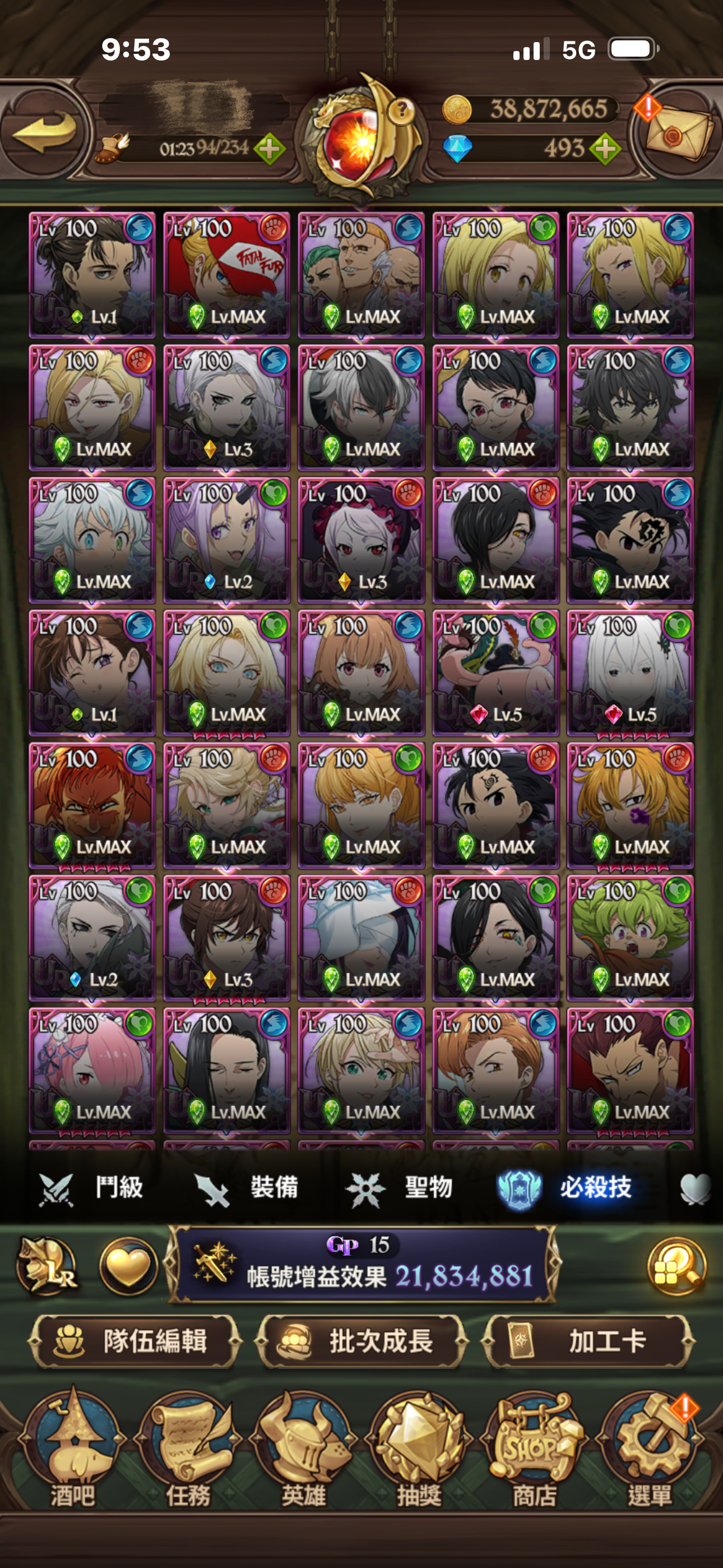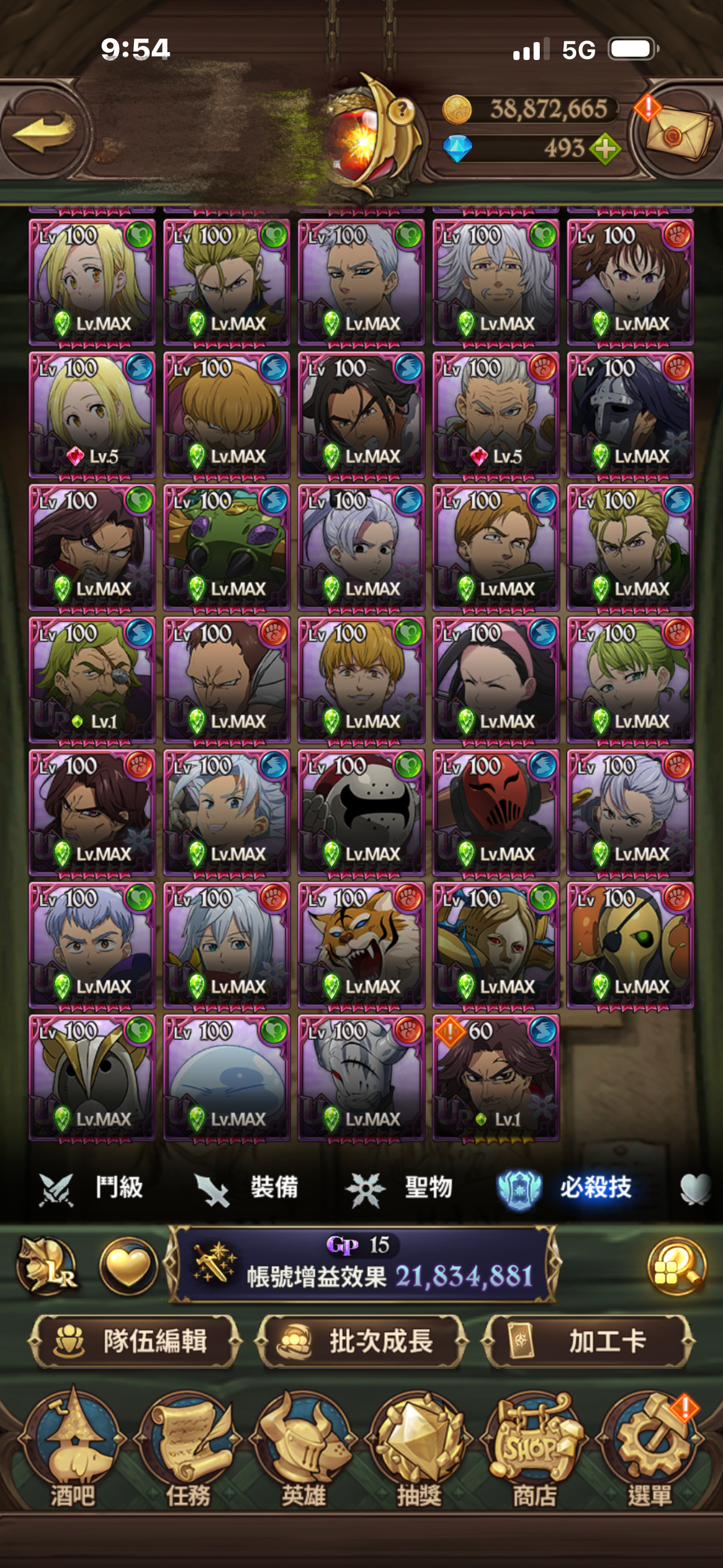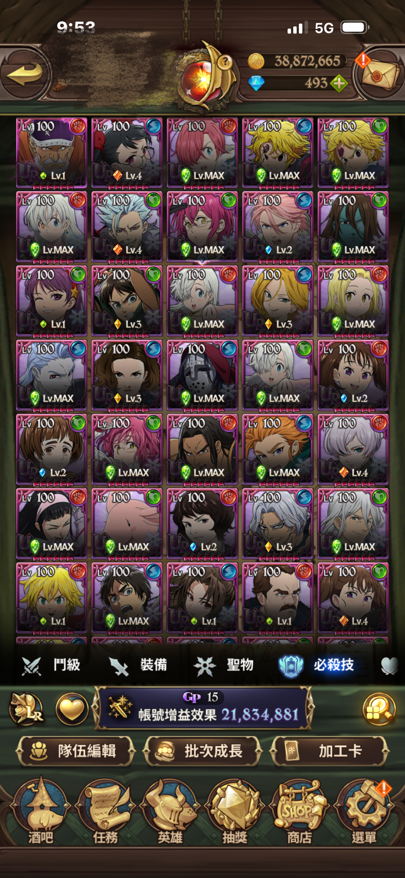 聖物全有 聖物強化 鳥魔獸 鹿魔獸 幾乎都大部分都強化完成!大亂鬥可打進第一名 每天拿滿資源!年卡已買 朱帽子亭買滿五個月