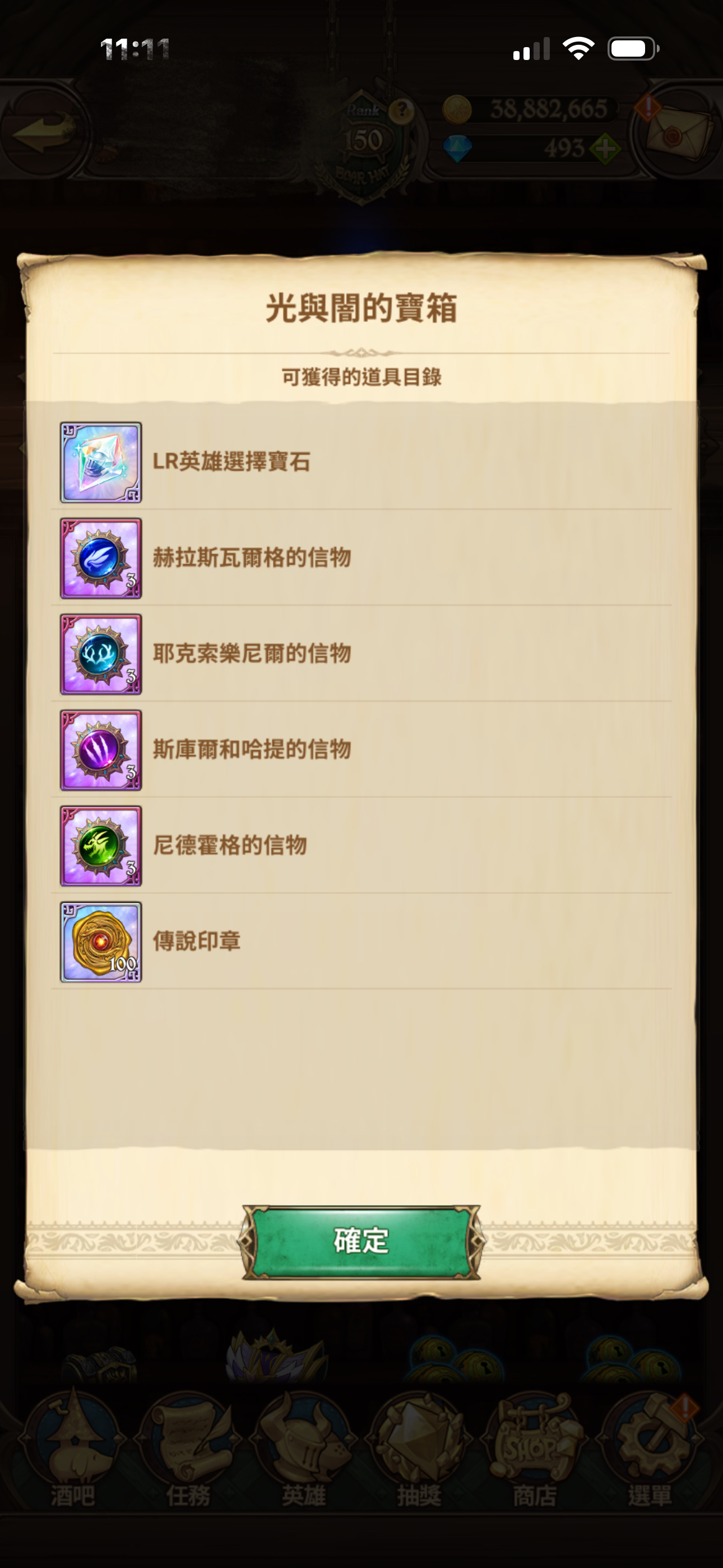 每個禮拜拿滿60鑽 王者決定戰也可進百名 時裝升級材料破百 裝備刻印石 254 傳說印章身上184 快出LR爆裂女 可直升 還有箱子可兌換傳說印章100個