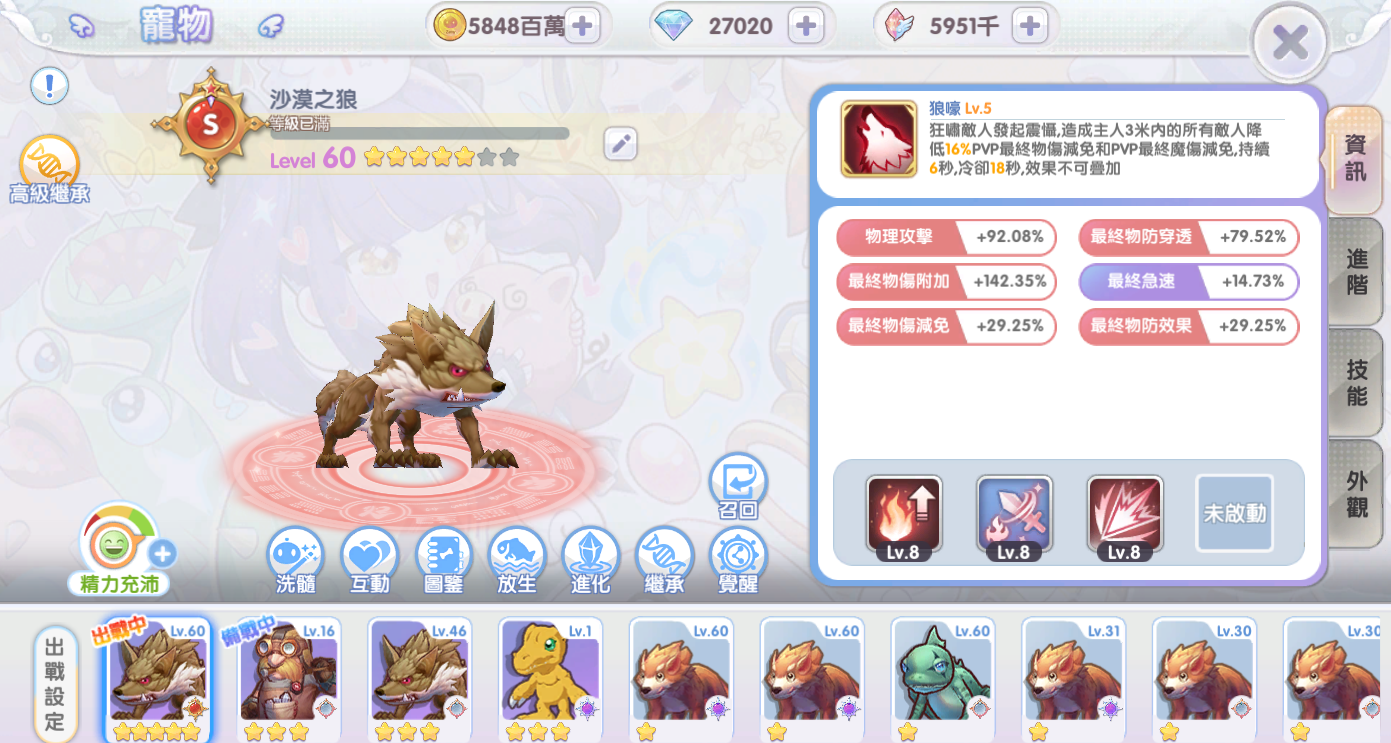 【150等、黃金岩漿、輕拳】 強11/附9/精4/影10/鬼燈/S狼/150等死騎4000秒以上