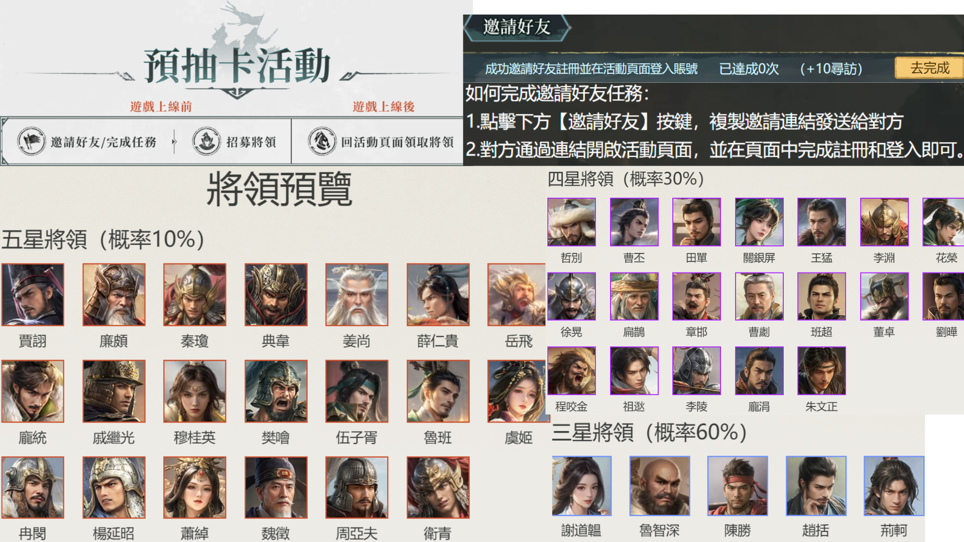 代練 🔆太陽電玩🔆預抽卡活動✔️代邀請好友【五星將領】 呂布、龐統、岳飛、典韋、樊噲