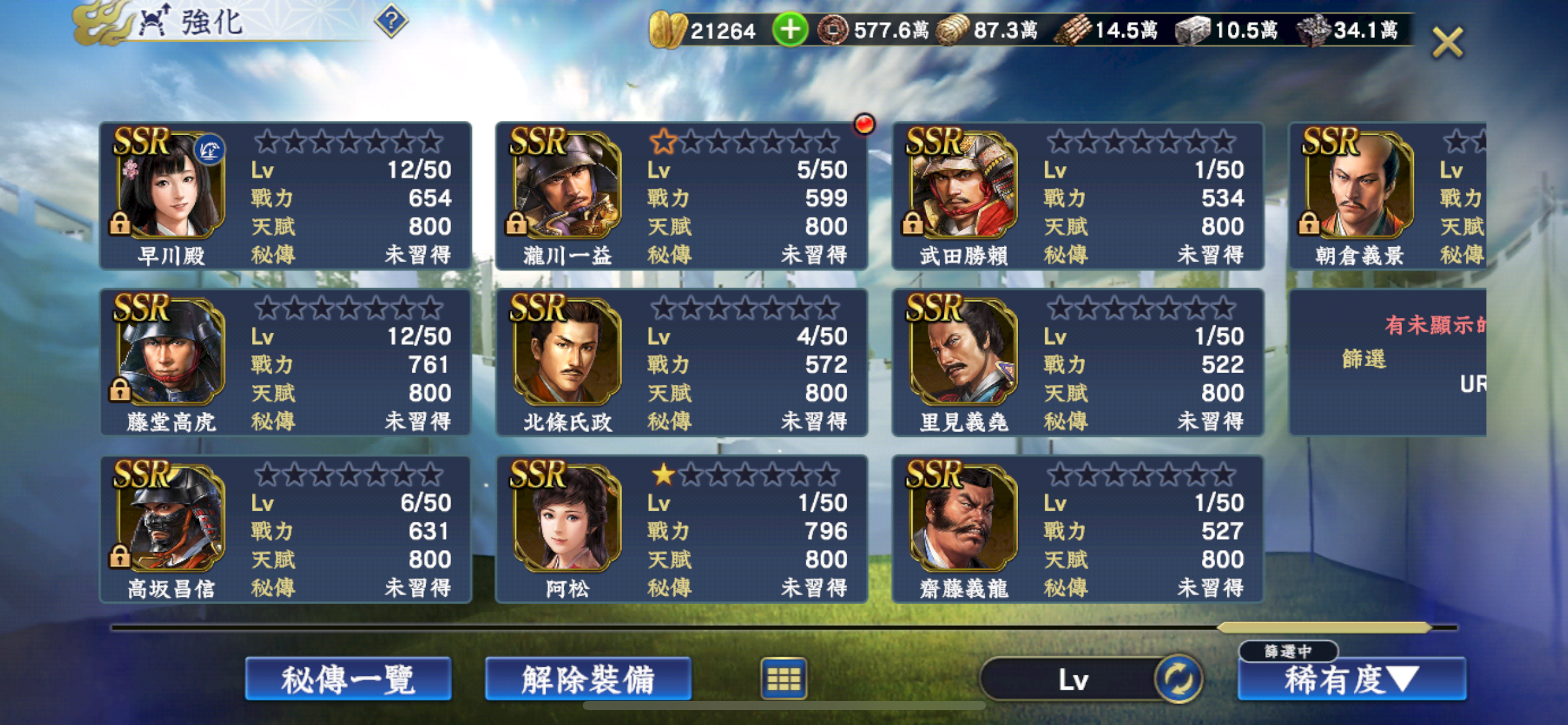 新增 UR前田慶次 直江兼續 SSR慶次1星 兼續 阿松2星
