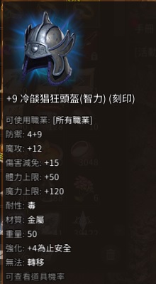 +9冷燄猖狂智力頭盔(智力)(刻印)