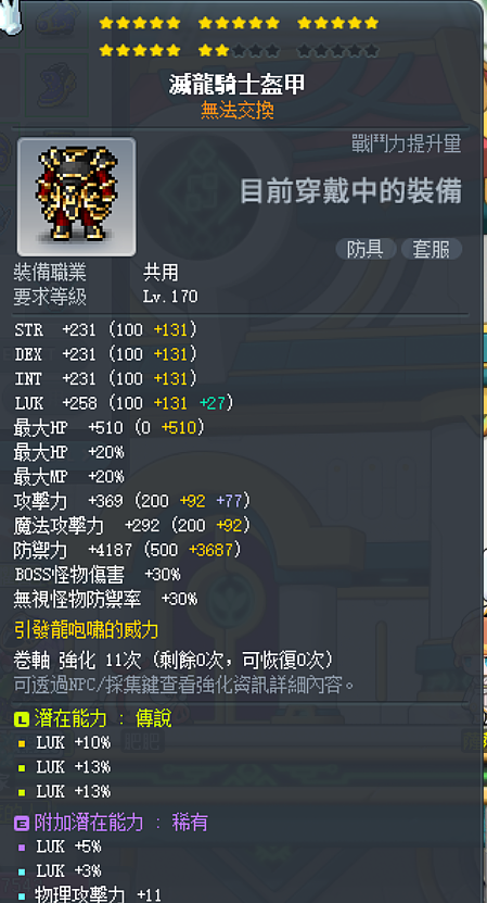 【滅龍騎士盔甲】 滅龍22星次頂36%幸全V含刀