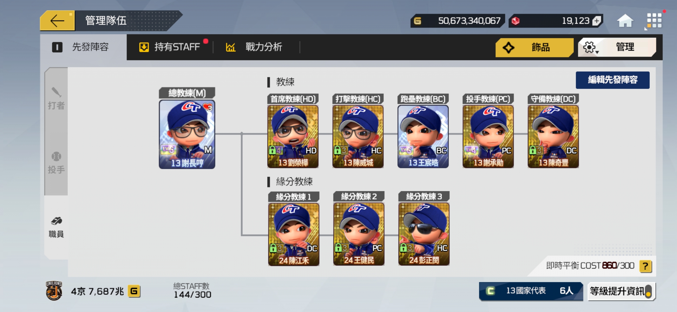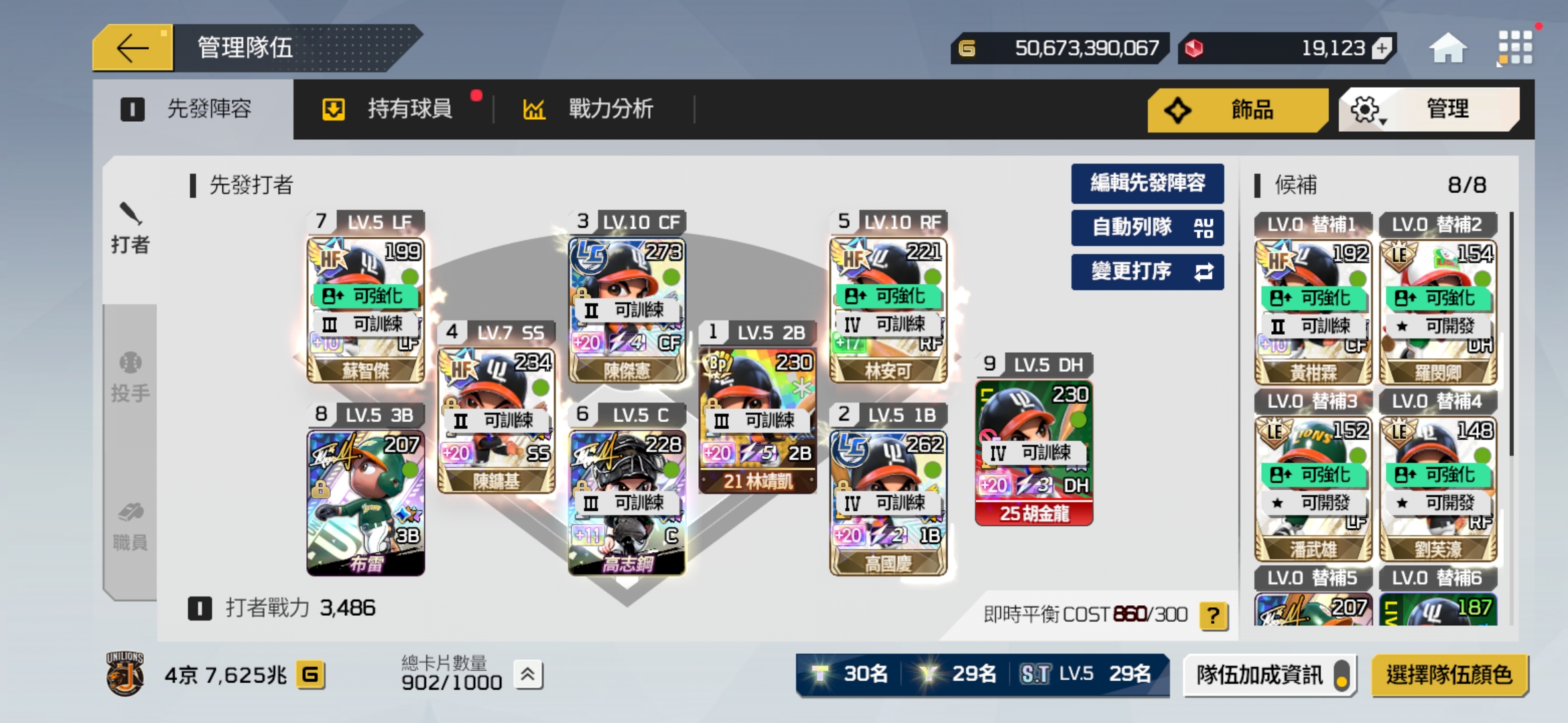 【44等】 4京7000兆 統一獅 多強卡 2萬寶石 5百億金幣 戰力持續增加