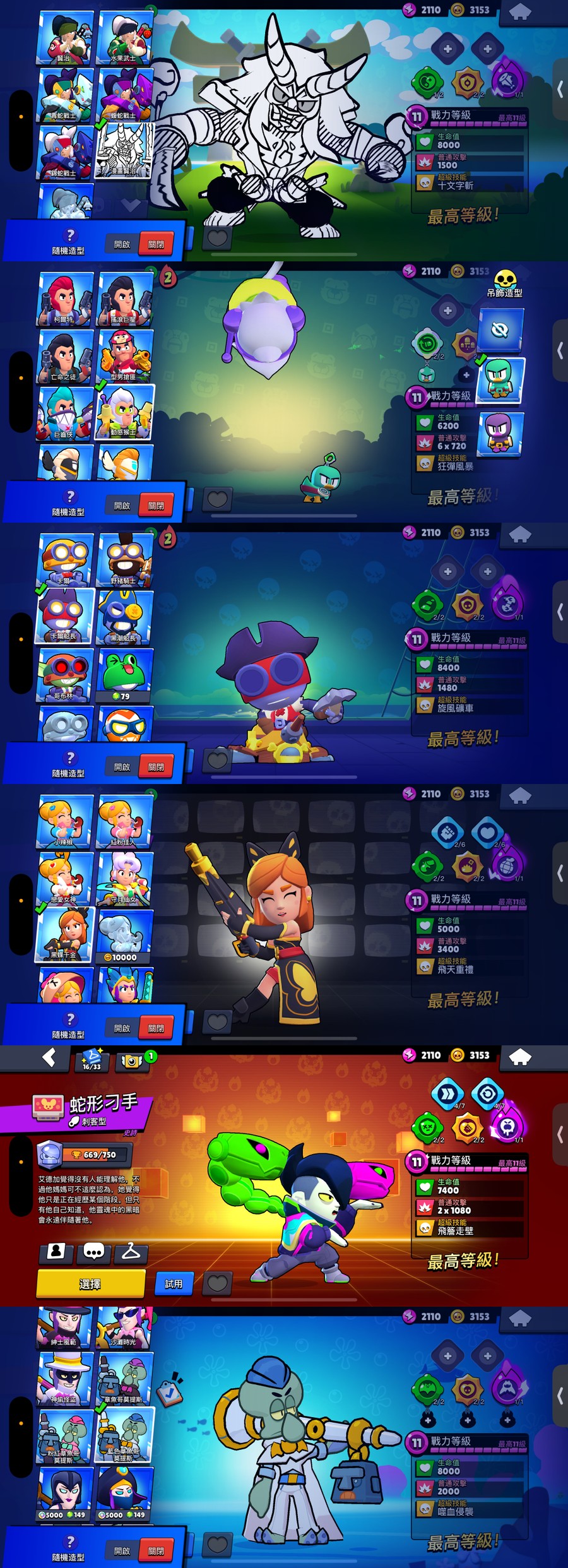 哥吉拉、打蝶高手、漫畫賢治、至高者、超級病毒、飛天小派克、惡魔吉他手、海綿寶寶、卡爾船長、南瓜神腿、永恆夢魘、皮老闆、章魚哥全套、蛇形刁手、逼逼船長、魔斯拉、黑蝶千金