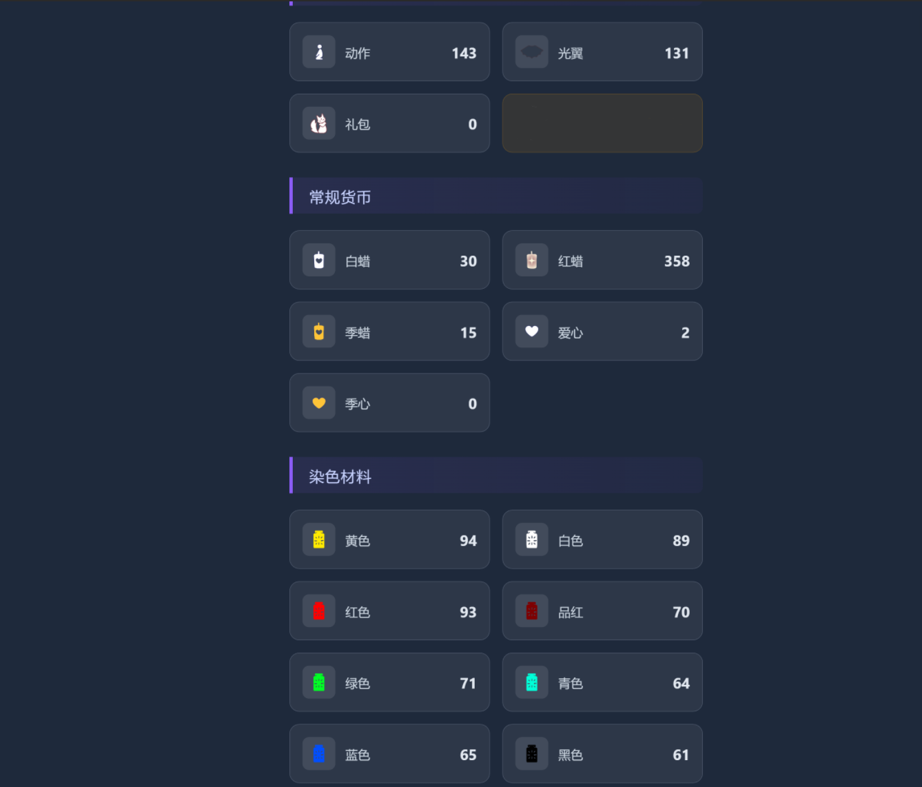 每種染料60+!!有織光季季票的號+160T(物品一樣,只是多了季票)