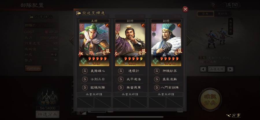 援助*1 靈動*2 踩踏*1 扶危*1 靈動*2 好學*2 雄烈 祈禱 奇門 道綱 出奇 精神 天公 長健 無間