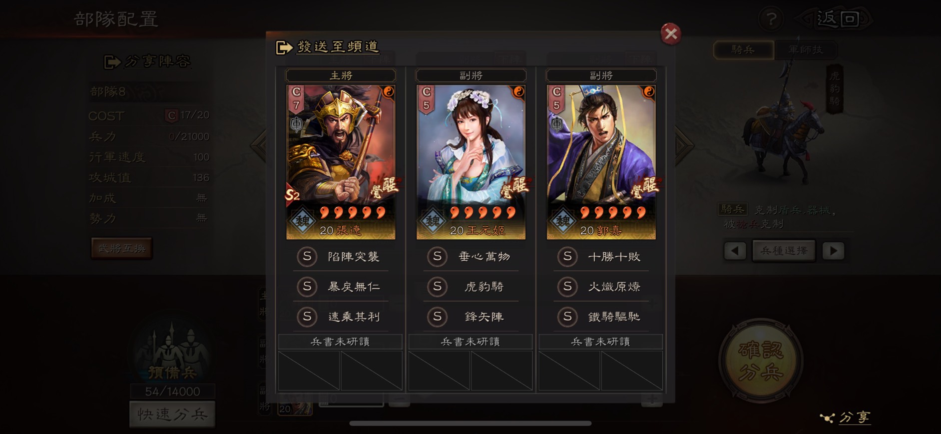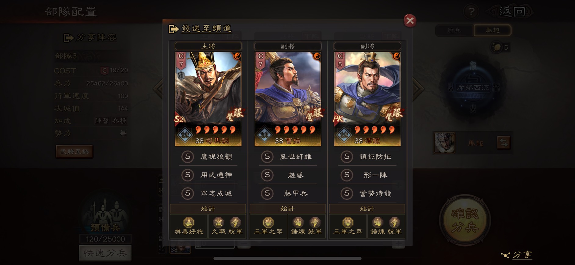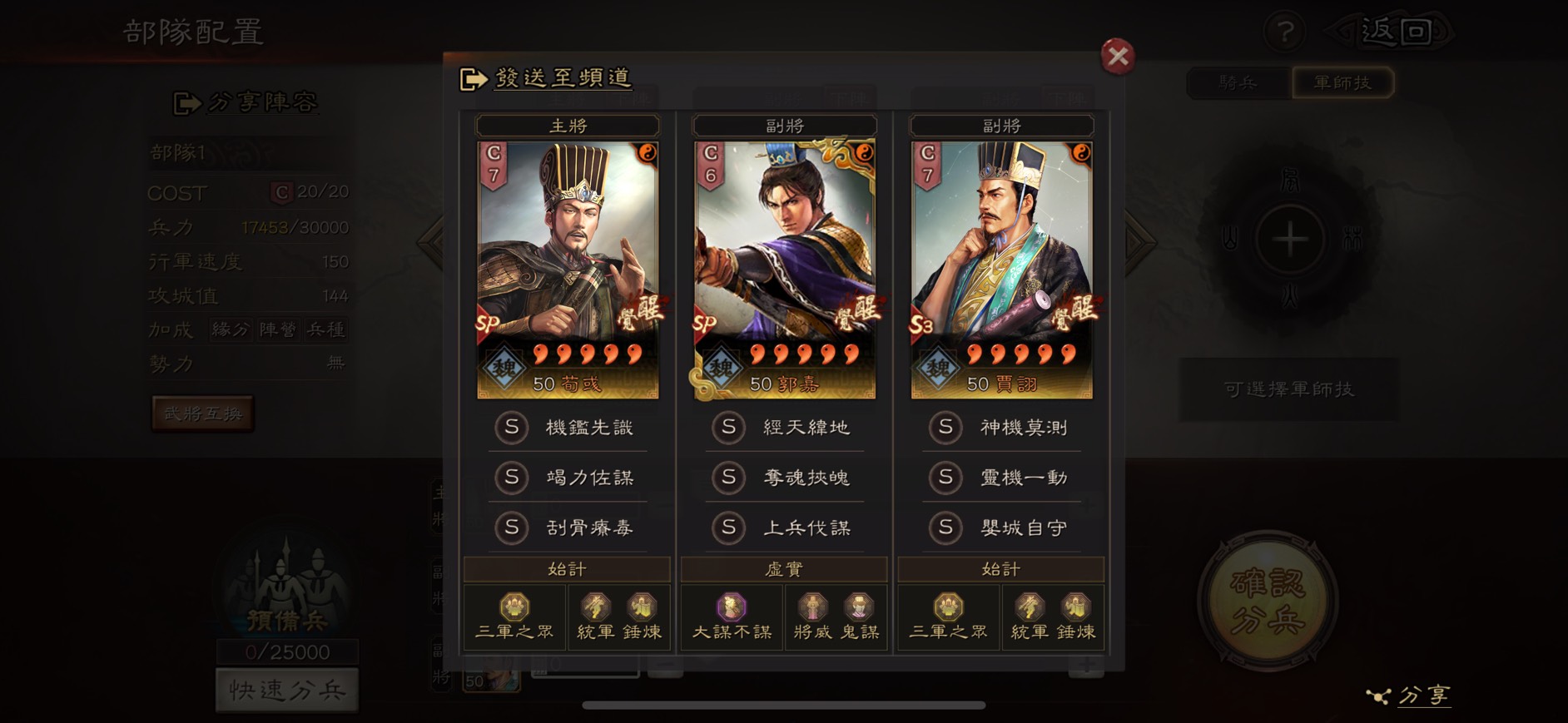 援助*1 靈動*2 踩踏*1 扶危*1 靈動*2 好學*2 雄烈 祈禱 奇門 道綱 出奇 精神 天公 長健 無間