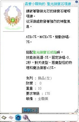 道具 聖光綠寶石項鍊共鳴1驅魔3+戒指安慰2神魔1全職業(以插好想兔+小賤狗經驗套卡)
