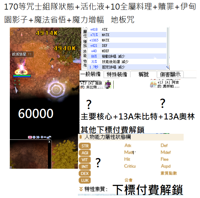 咒術士130-240等配裝老闆親自練 基本上都能安然到260 不懂得歡迎提問