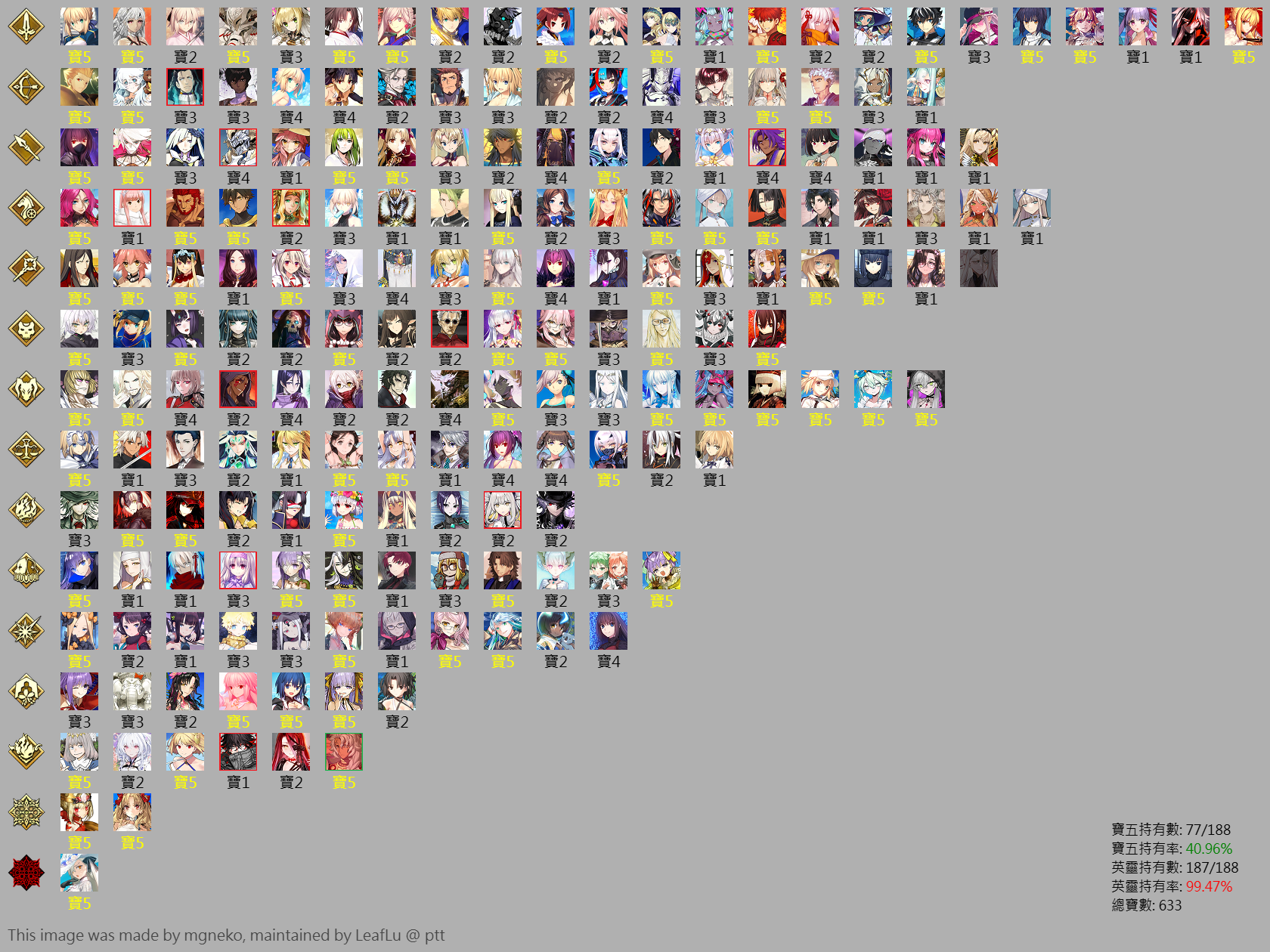 【191等】 188/634 超級重氪 高練號 70+隻寶具LV.5