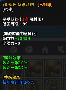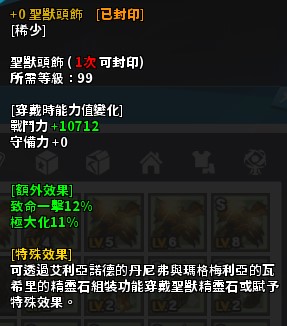 道具 【全新】 聖獸頭飾 致命22% / 致命12% 極大11%