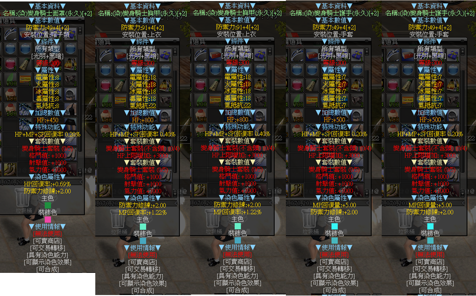道具 (染裝) +2變身騎士一套5件 (無負值,新手用到畢業