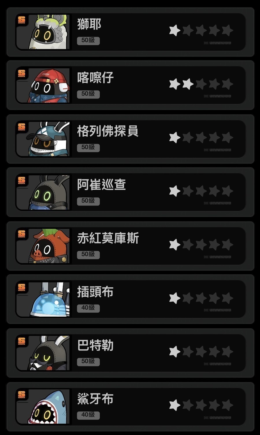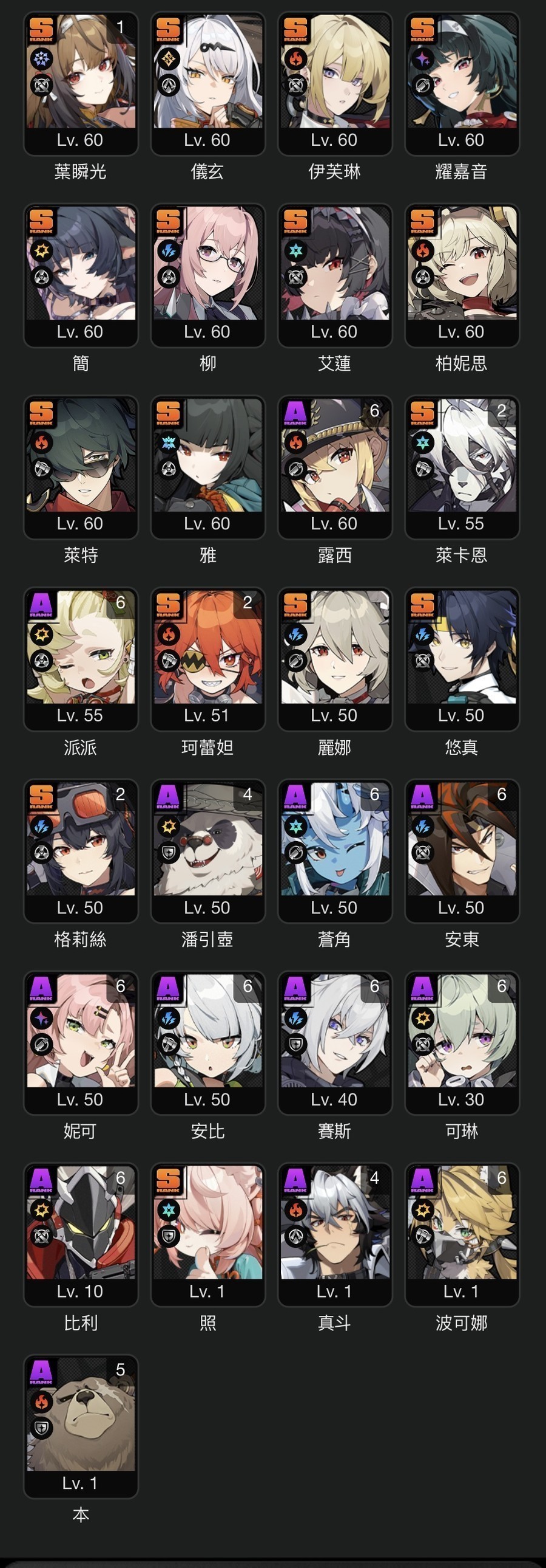 12個不重複S限定代理人,基本上可組4隊以上。